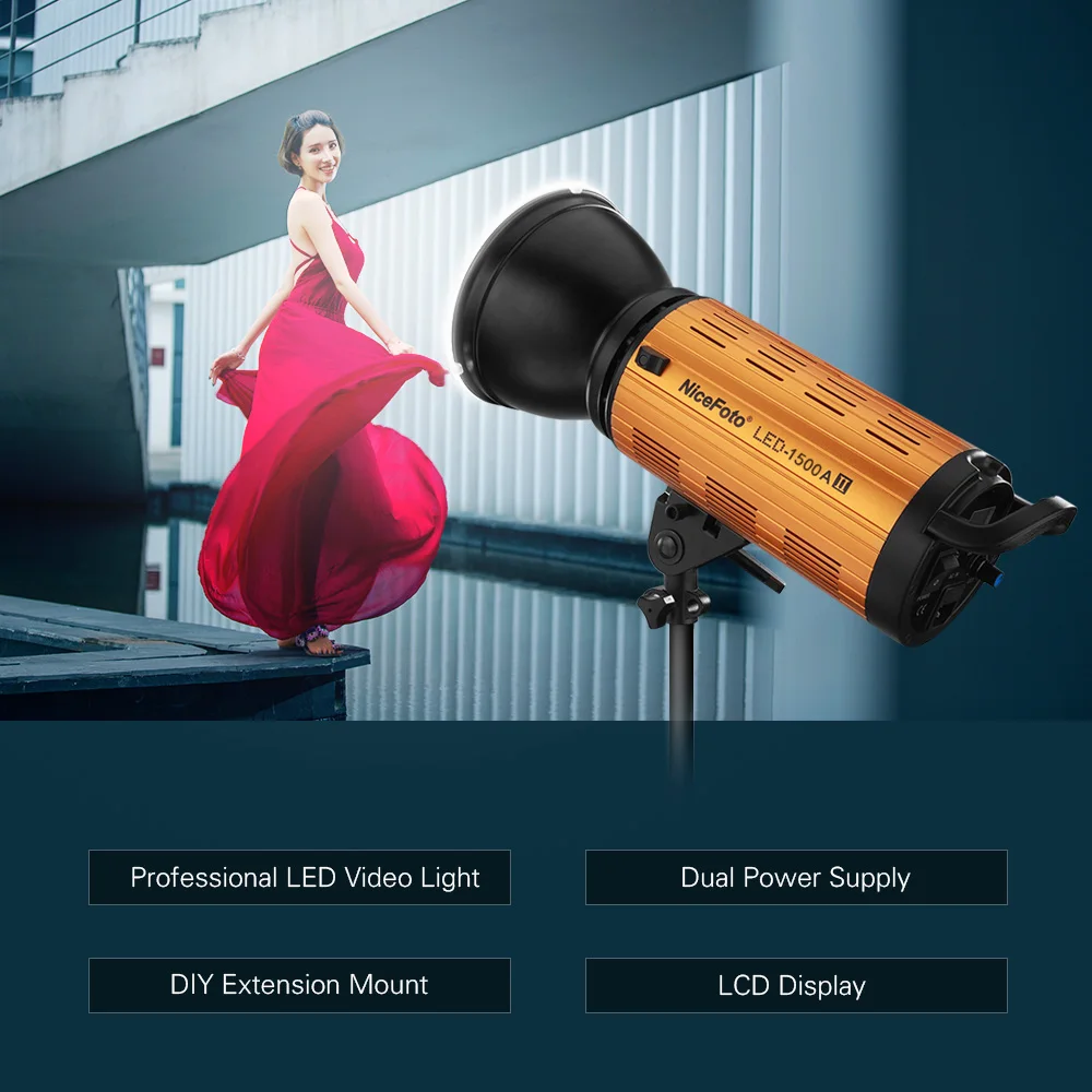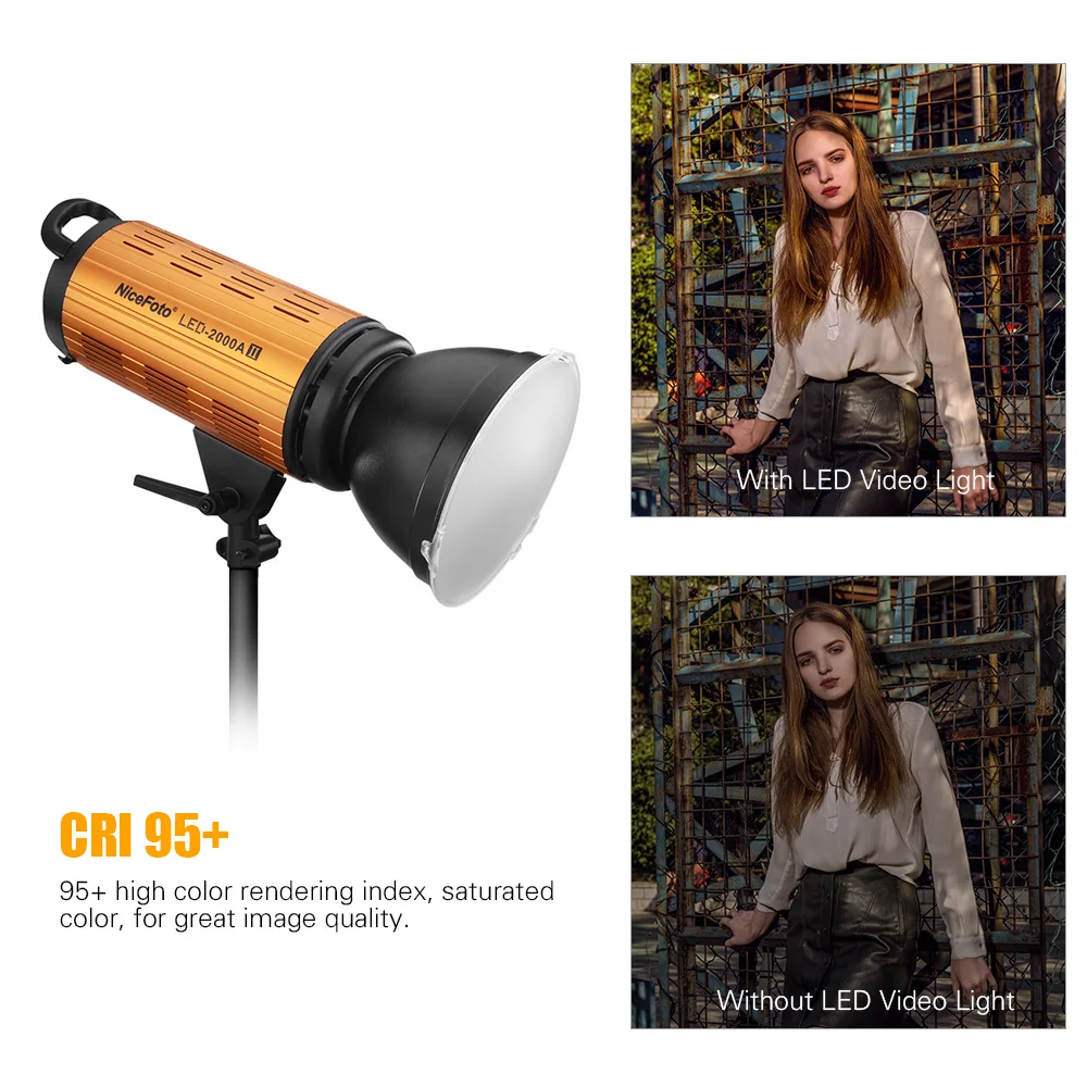 NiceFoto LED-1500A/2000A II 150/200W LED Video Light Lamp Fill-in Light 3200-6500K+LCD Display APP Control for Studio Portrait