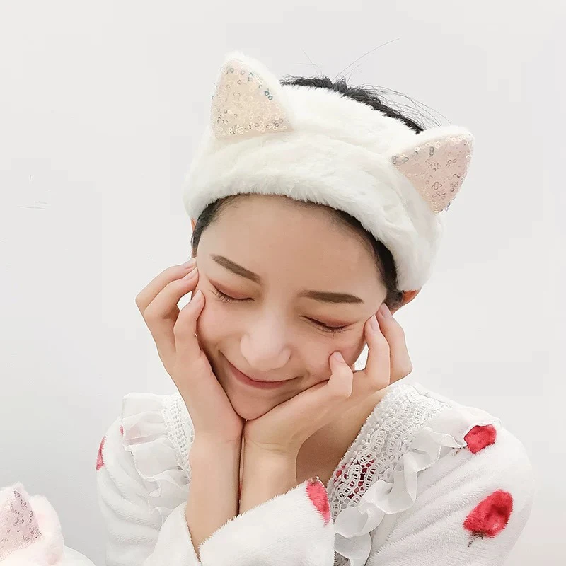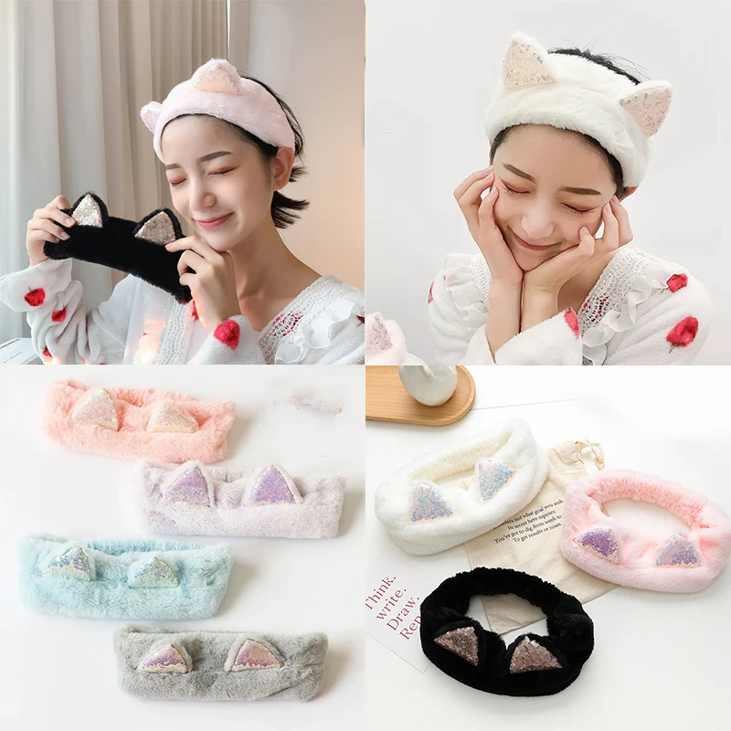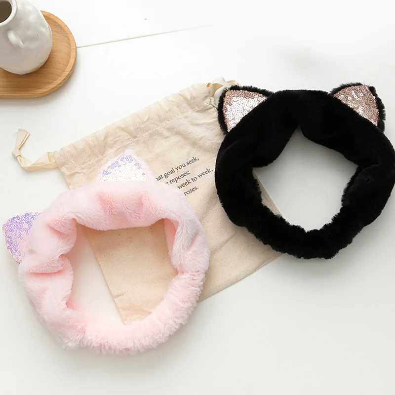 Блестящий плюшевый головной убор с кошачьими ушками, мягкая эластичная повязка для волос на лицо