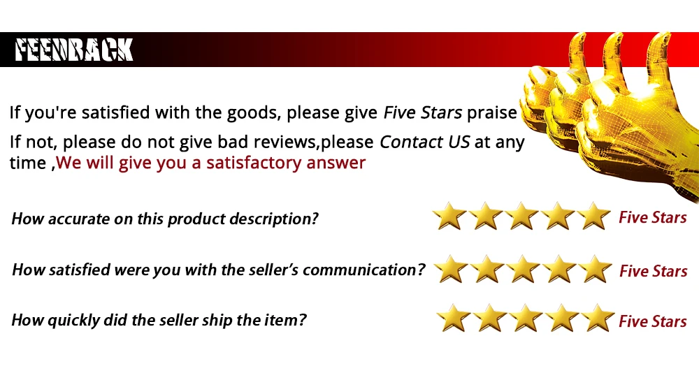 4. Мы должны с удовольствием помочь им решить любую проблему, пожалуйста, свяжитесь с нами, прежде чем оставлять нам отрицательные отзывы.