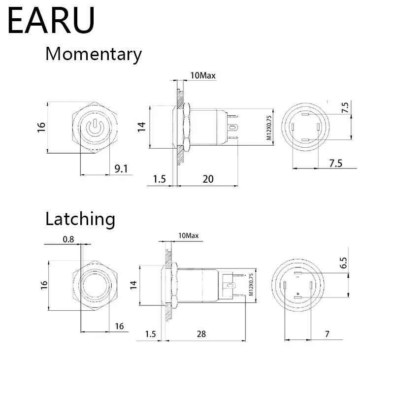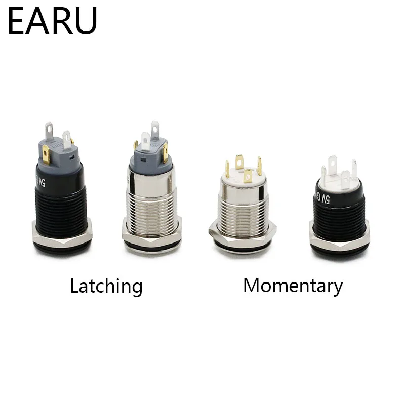 12 мм водонепроницаемый металлический кнопочный выключатель, светодиодный светильник, черный Выключатель без фиксации, автомобильный двигатель, ПК, выключатель питания 3-380 В, красный, синий, зеленый