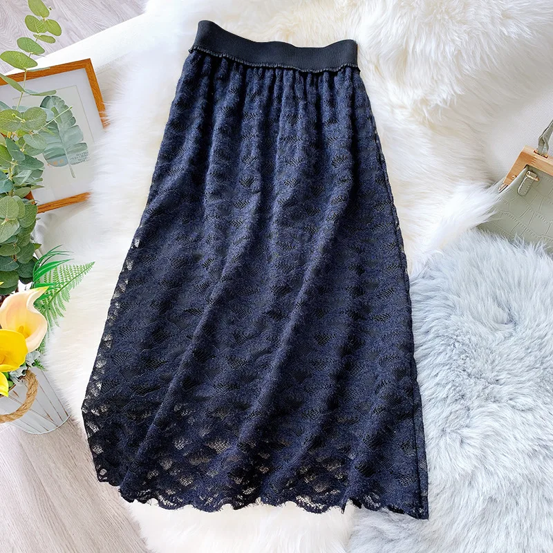 ОписаниеНовинка весна осень кружевная длинная юбка ropa mujer WF0019 jupe femme Черный абрикос Высокая талия трапециевидная Женская юбка