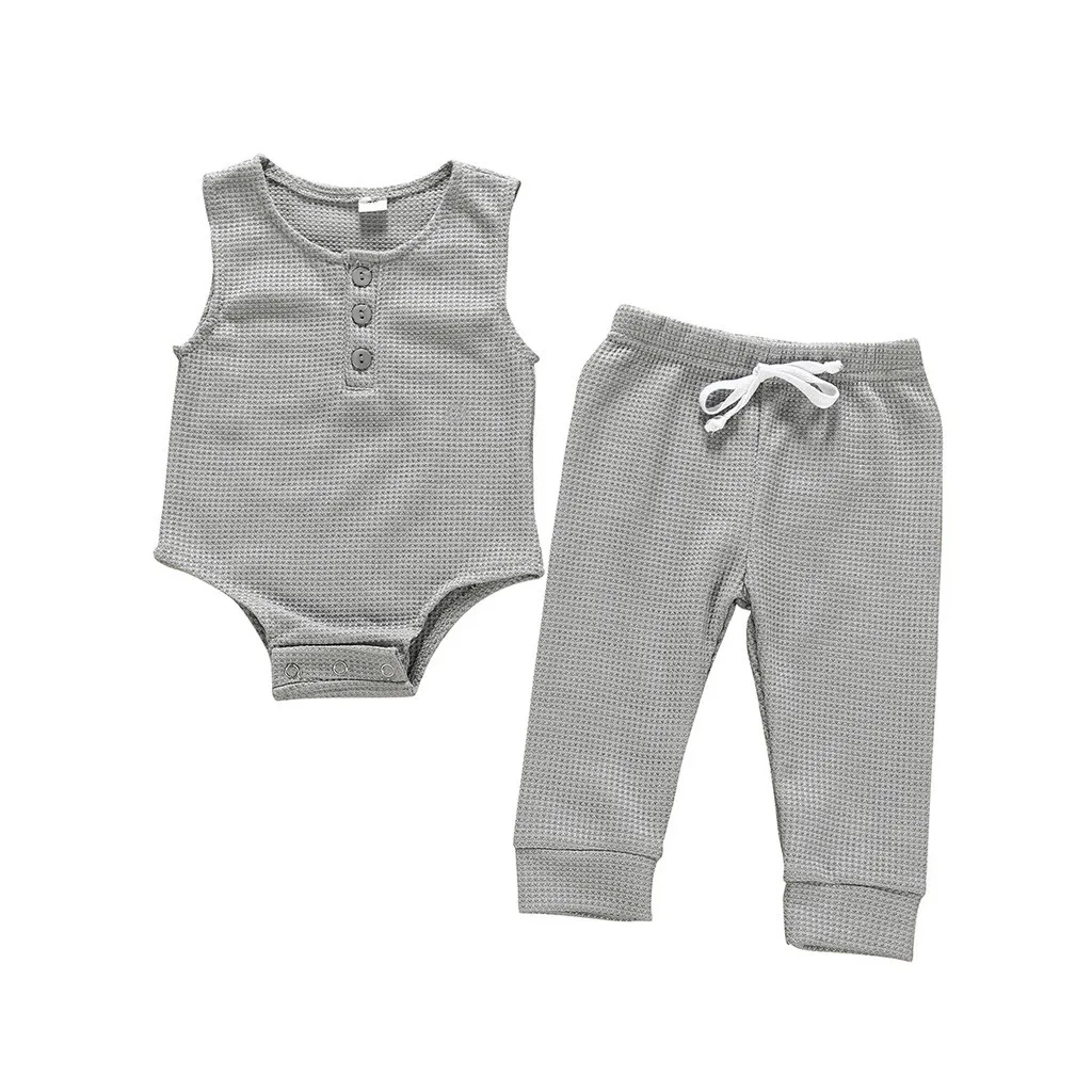 Однотонный комбинезон без рукавов для новорожденных мальчиков и девочек, топы, штаны с бантом, комплект одежды