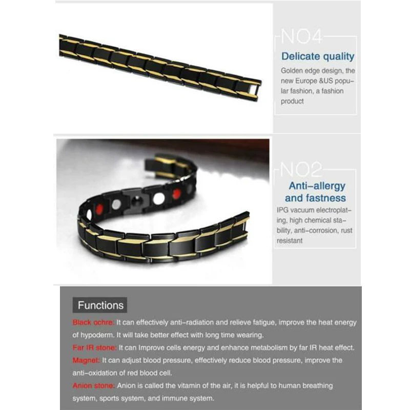 Терапевтический энергетический лечебный браслет из нержавеющей стали магнитный терапевтический браслет Модный Титановый стальной мужской браслет пара