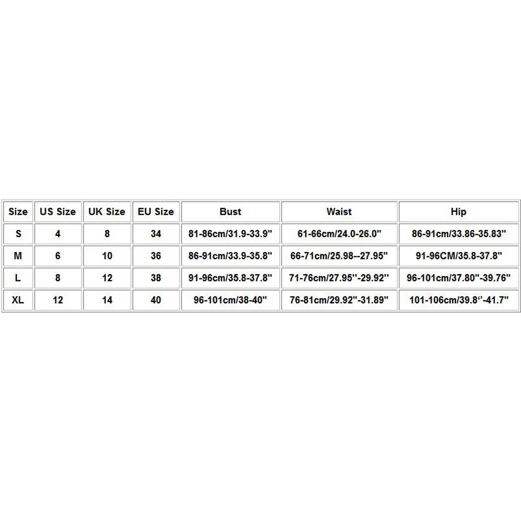 SizeUS SizeUK SizeEU SizeBustWaistHipS483481-86cm/31.9-33.9"61-66cm/24.0-26.0"86-91cm/33.86-35.83"M6103686-91cm/33.9-35.8"66-71cm/25.98--27.95"91-96CM/35.8-37.8"L8123891-96cm/35.8-37.8"71-76cm/27.95''-29.92''96-101cm/37.80"-39.76"XL12144096-101cm/38-40"76-81cm/29.92"-31.89"101-106cm/39.8‘'-41.7"