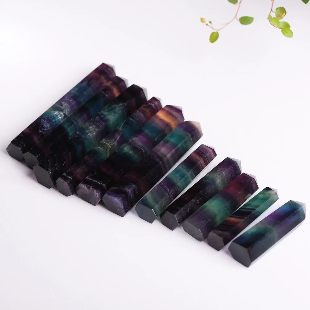 1 шт. натуральный флюорит шестиугольная колонна Кристалл точка ремонт палочка камень фиолетовый зеленый драгоценный камень минеральное украшение для дома
