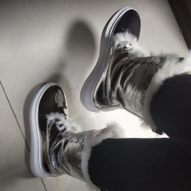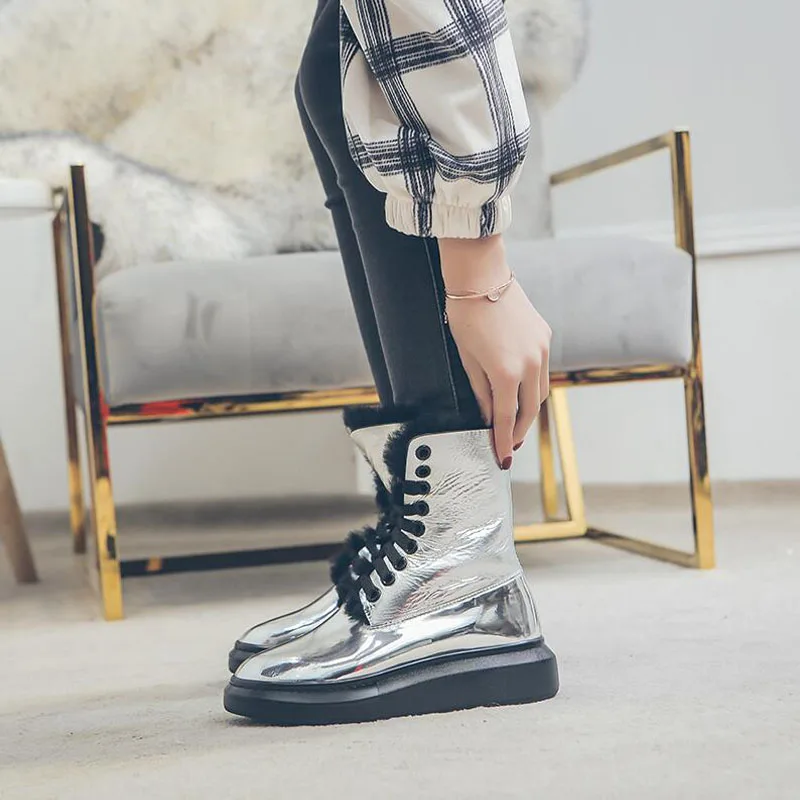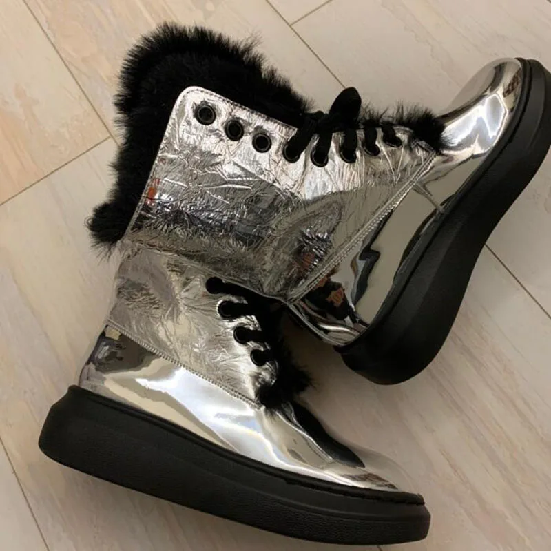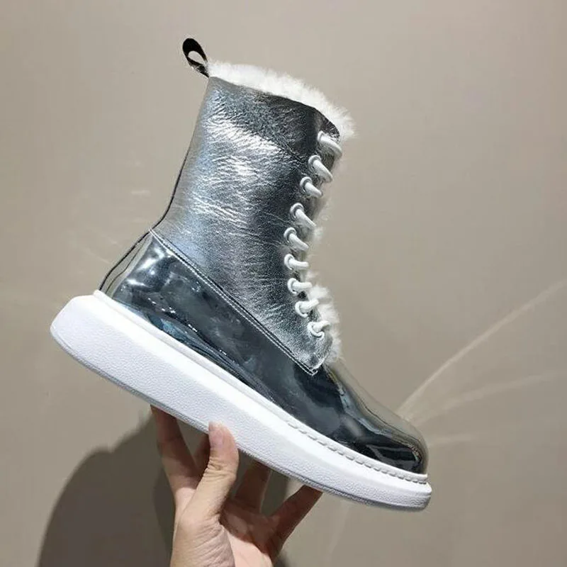 Зимние сапоги на высокой платформе со шнуровкой серебристого цвета; Женские модные теплые ботильоны с плюшевой подкладкой 2020 года; Женские водонепроницаемые Sr-236 с хлопковой подкладкой