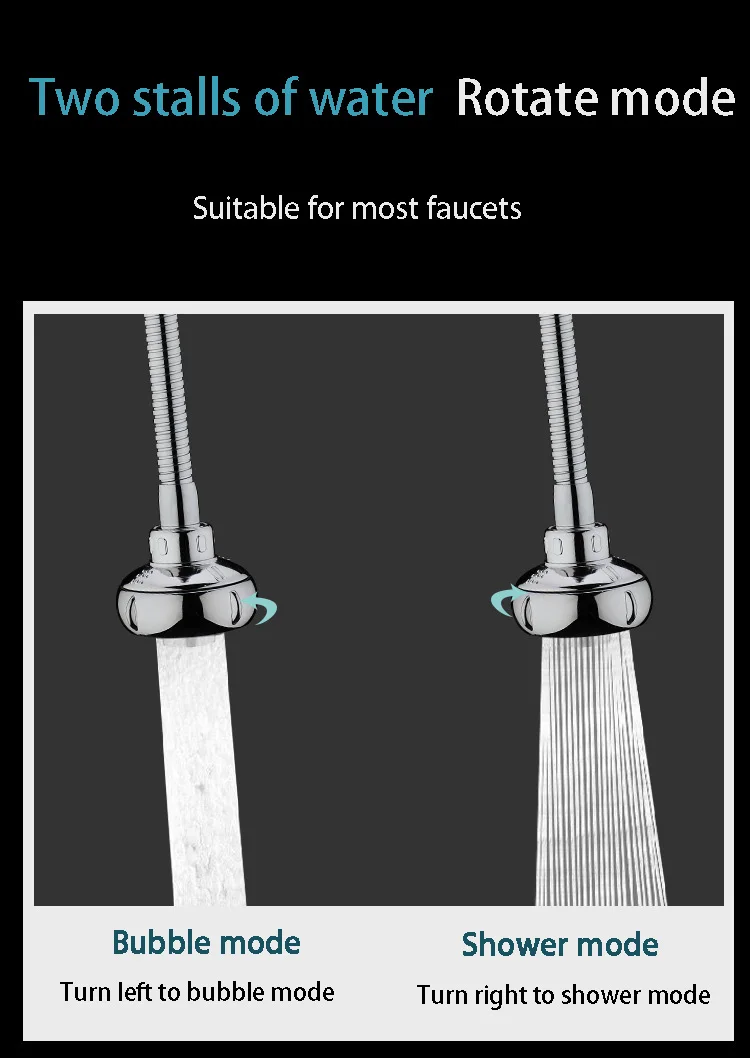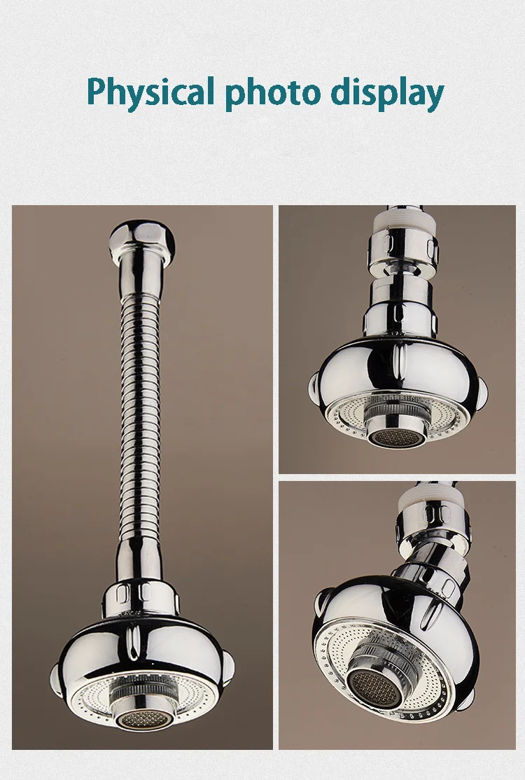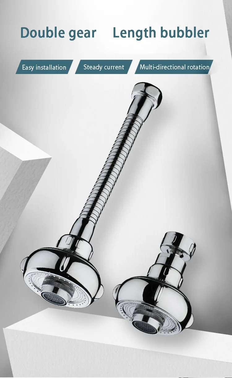 Название продукта: двухступенчатый барботер для смесителя Стиль: короткий/длинный Метод модуляции: вращение Область применения: кухня, ванная комната Материал: трубка из нержавеющей стали + Корпус из АБС-пластика с защитой окружающей среды Подходит для большинства кранов на рынке