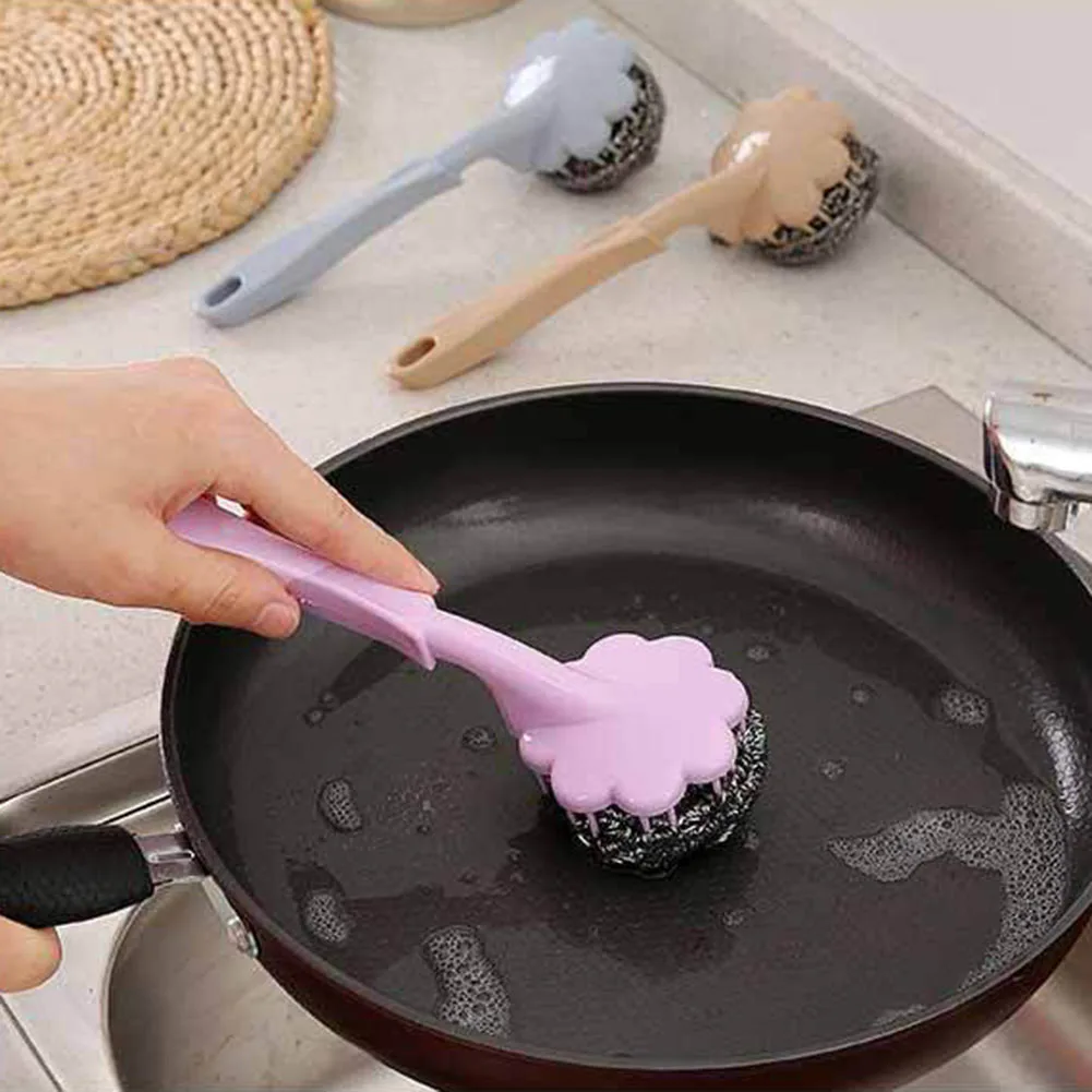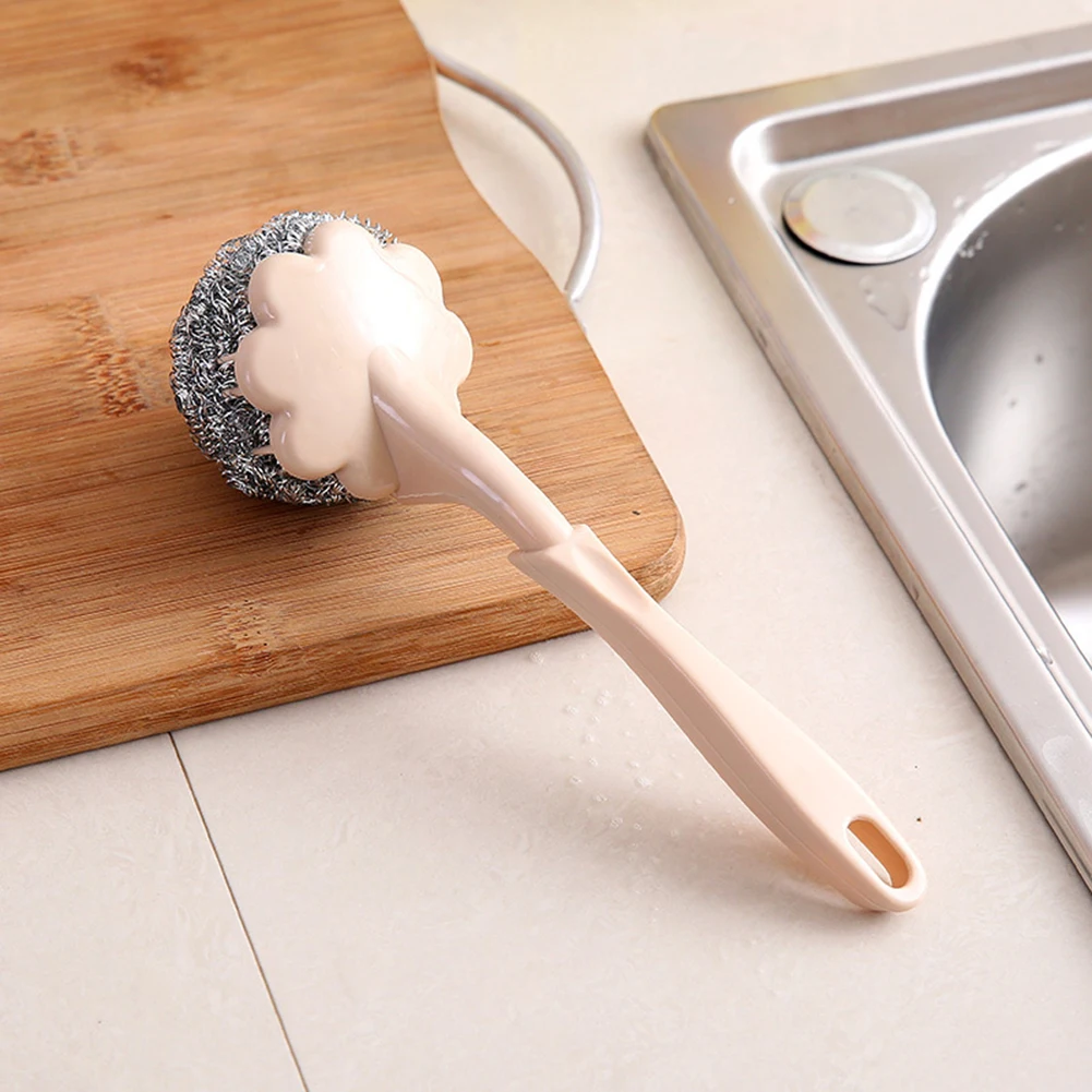 Кухонная стальная проволока с длинной ручкой для мытья посуды
