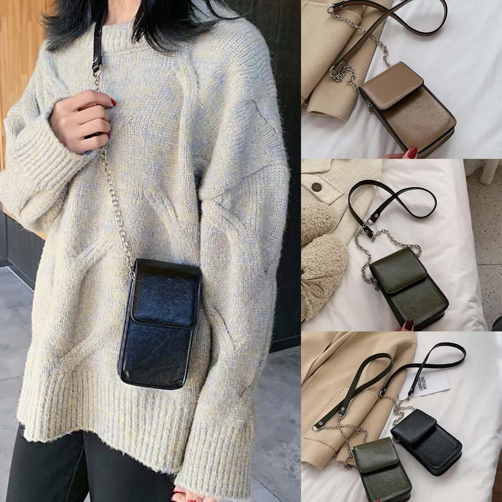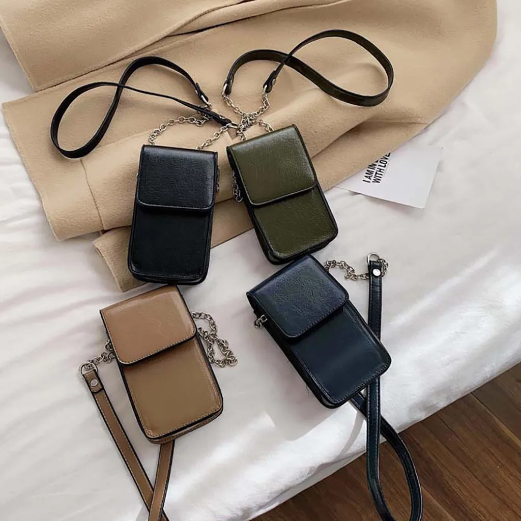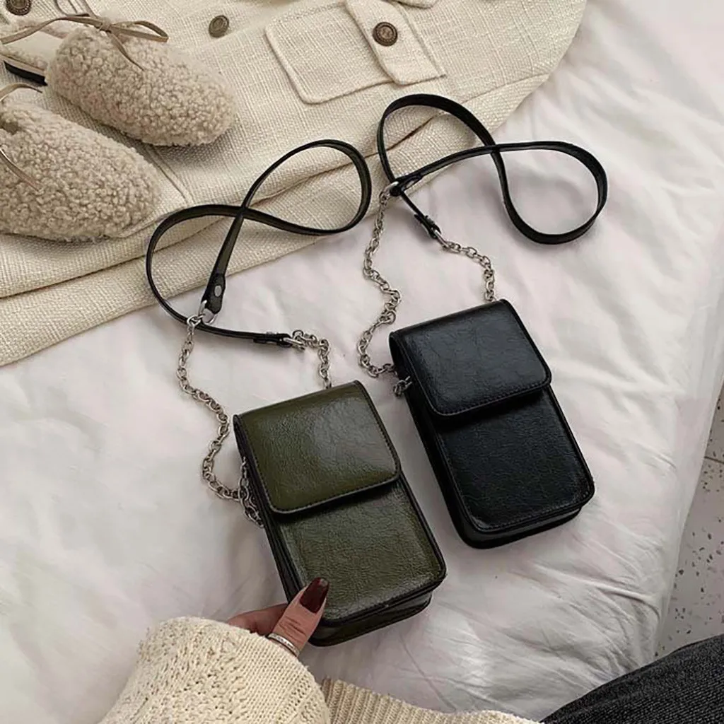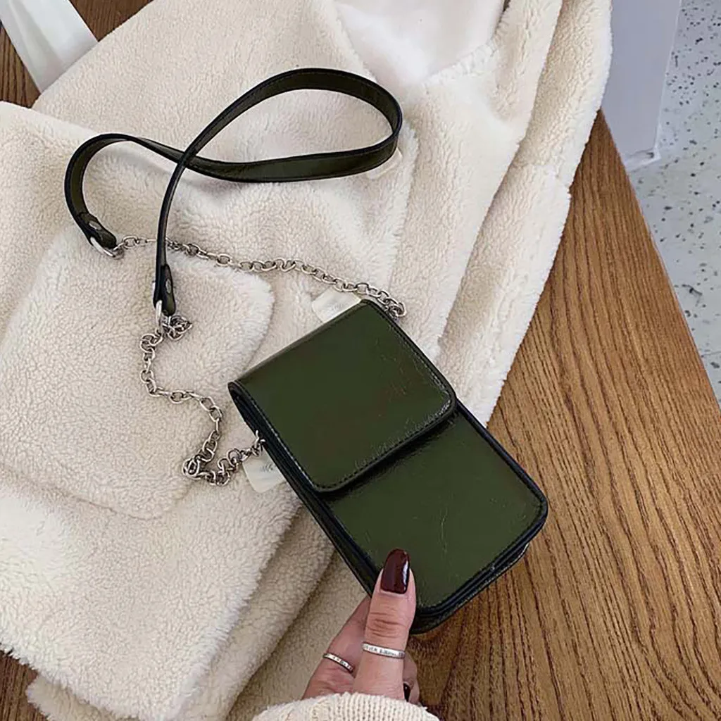 Women Ladies Bag Shoulder Phone Crossbody Small Square Bag Fashion Casual Magnetic Chain Wild Simple Leather Temperament H1