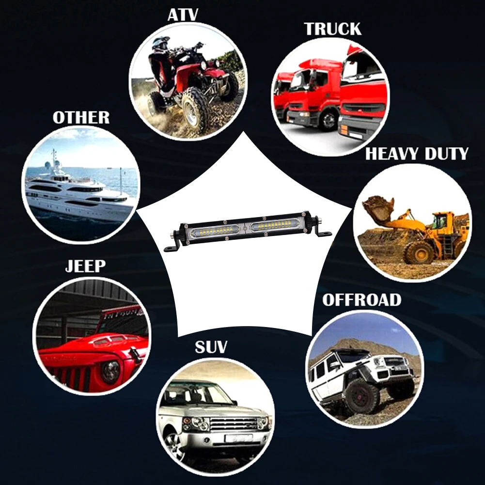 *3.Combined with spotlight and floodlight combo beam in a light bar for optimal light spread.Broad reflective plate on both sides allows multi-angle refraction, ideal for ambient illumination.