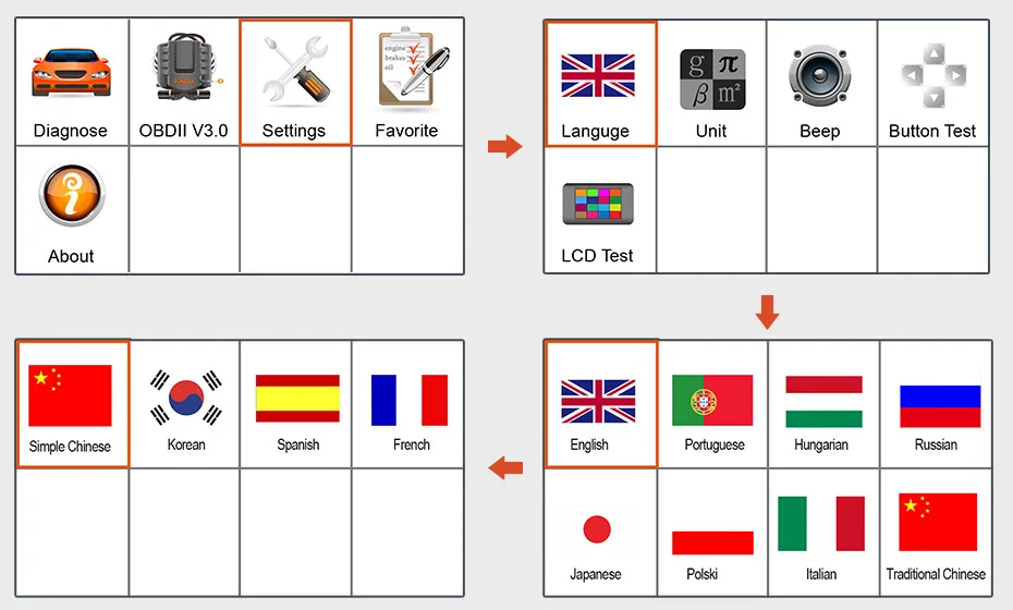 ANCEL FX4000 Поддержка нескольких языков