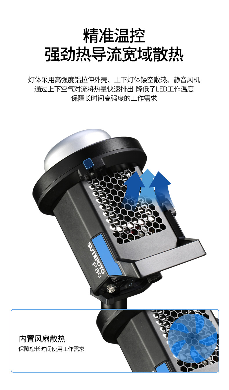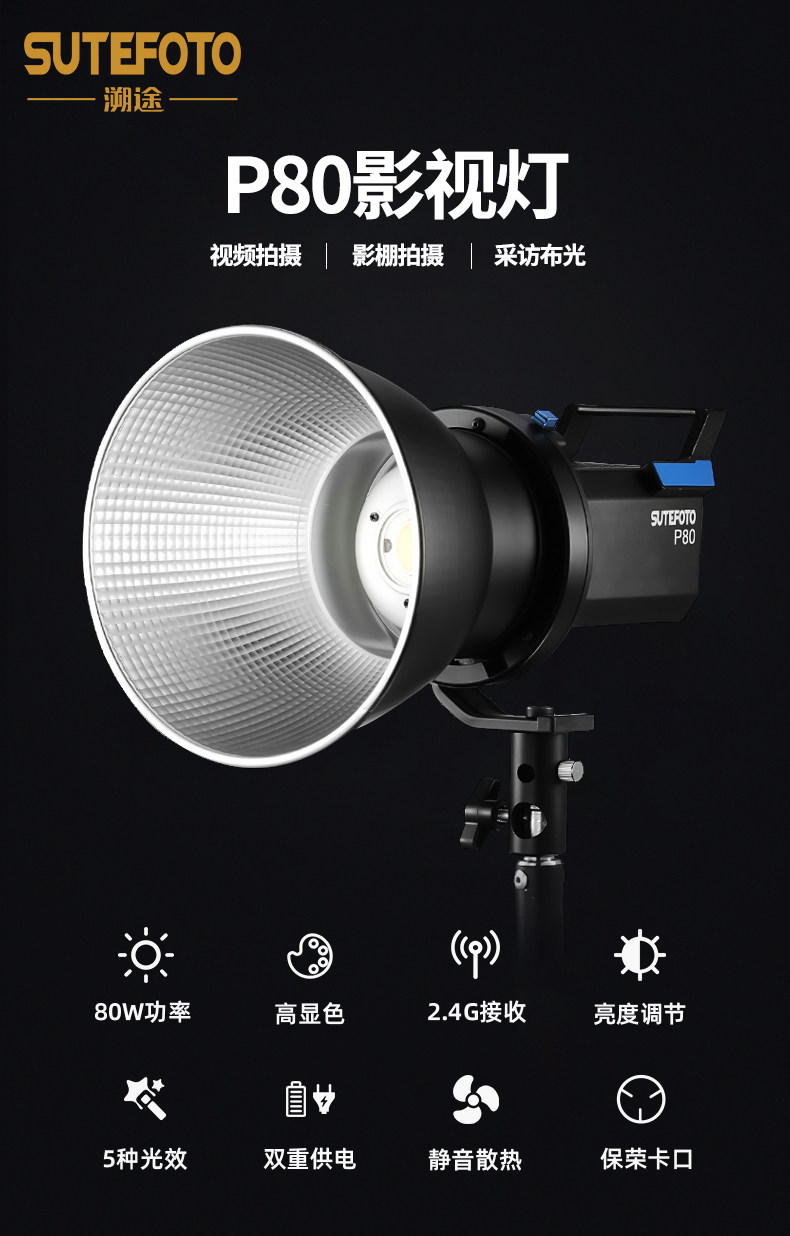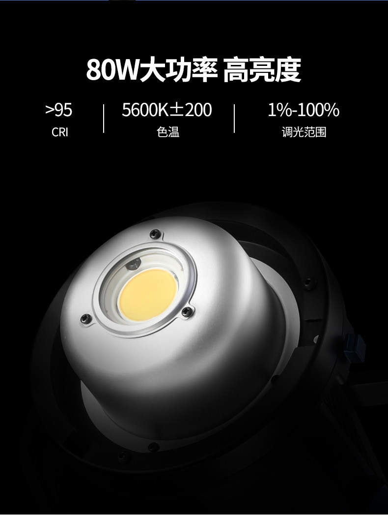 【 80 Вт, регулируемая яркость, 5 предварительно запрограммированных светильник Effects】Sutefoto P80 светодиодный френель с высокой мощностью 80 Вт светодиодный, этот Точечный светильник обеспечивает вам высокую яркость, И Яркость регулируется от 1%-100%; С ультратонкое естественное освещение CRI 96 + TLCI 95 + 5600K(士 200K) Дневной светильник, встроенный 5 Предварительно запрограммирован светильник эффекты, это подходит для ключей светильник заполнения светильник для трансляции видео запись, Фотосъемка и студийное кино.