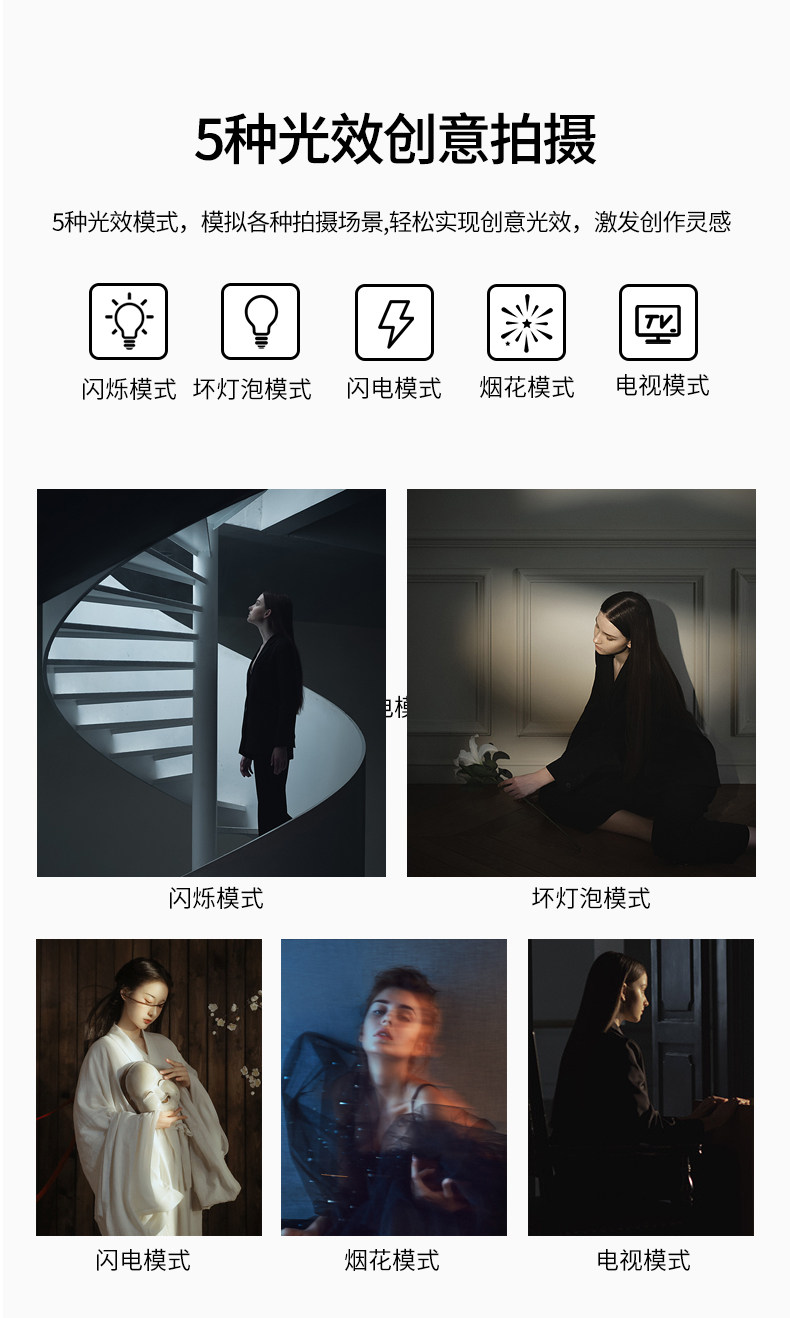 80 Вт Яркость регулируется от 1%-100%, с 5 световыми эффектами для гибкого использования!