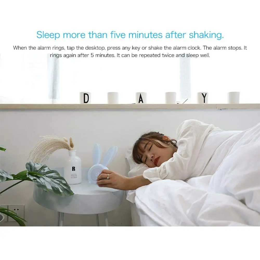 Портативный цифровой будильник в форме милого кролика со светодиодным звуком, ночник, Настольный светильник, настенные часы для украшения дома