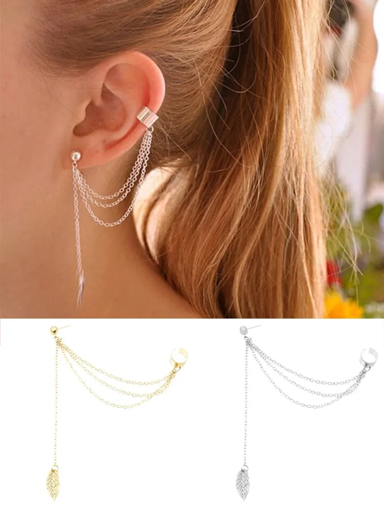 1 шт в стиле «панк-рок» Стиль серьги на крючках на каждый день женские серьги золотого и серебряного сплава лист Форма цепь кисточкой серьги подарок бмжутерия # Z