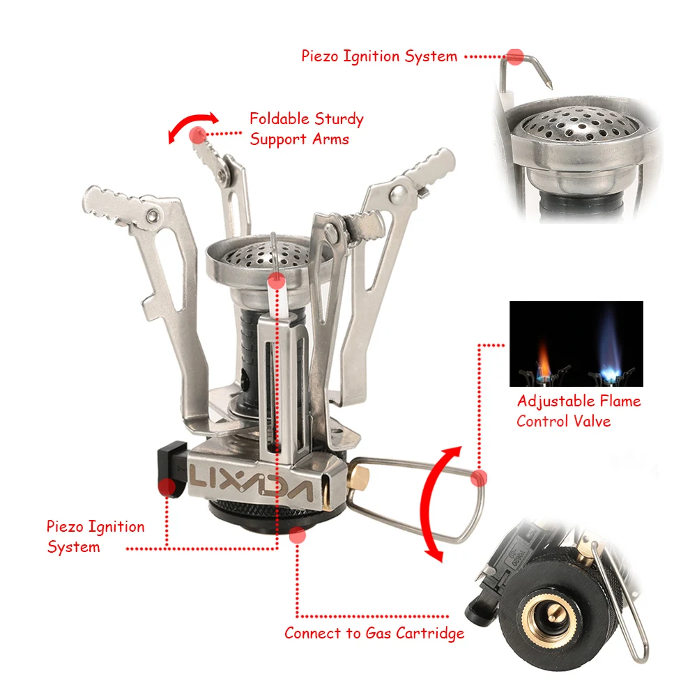 2 шт. мини газовая плита с адаптером, идеально подходит для кемпинга на открытом воздухе, альпинизма, пеших прогулок и т. д.