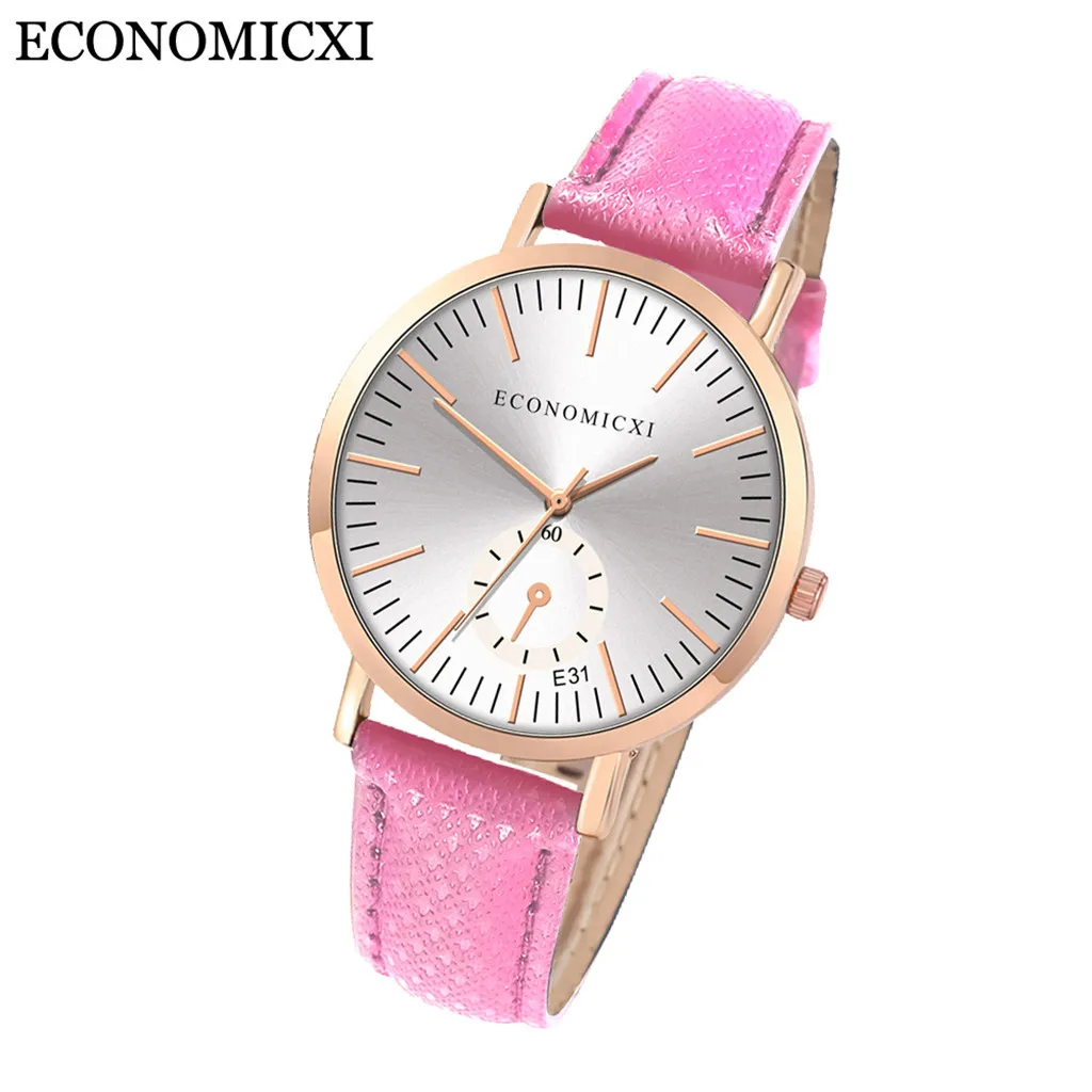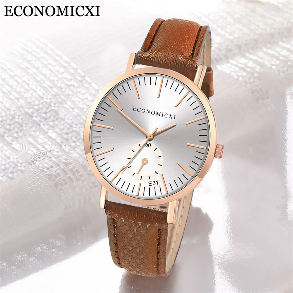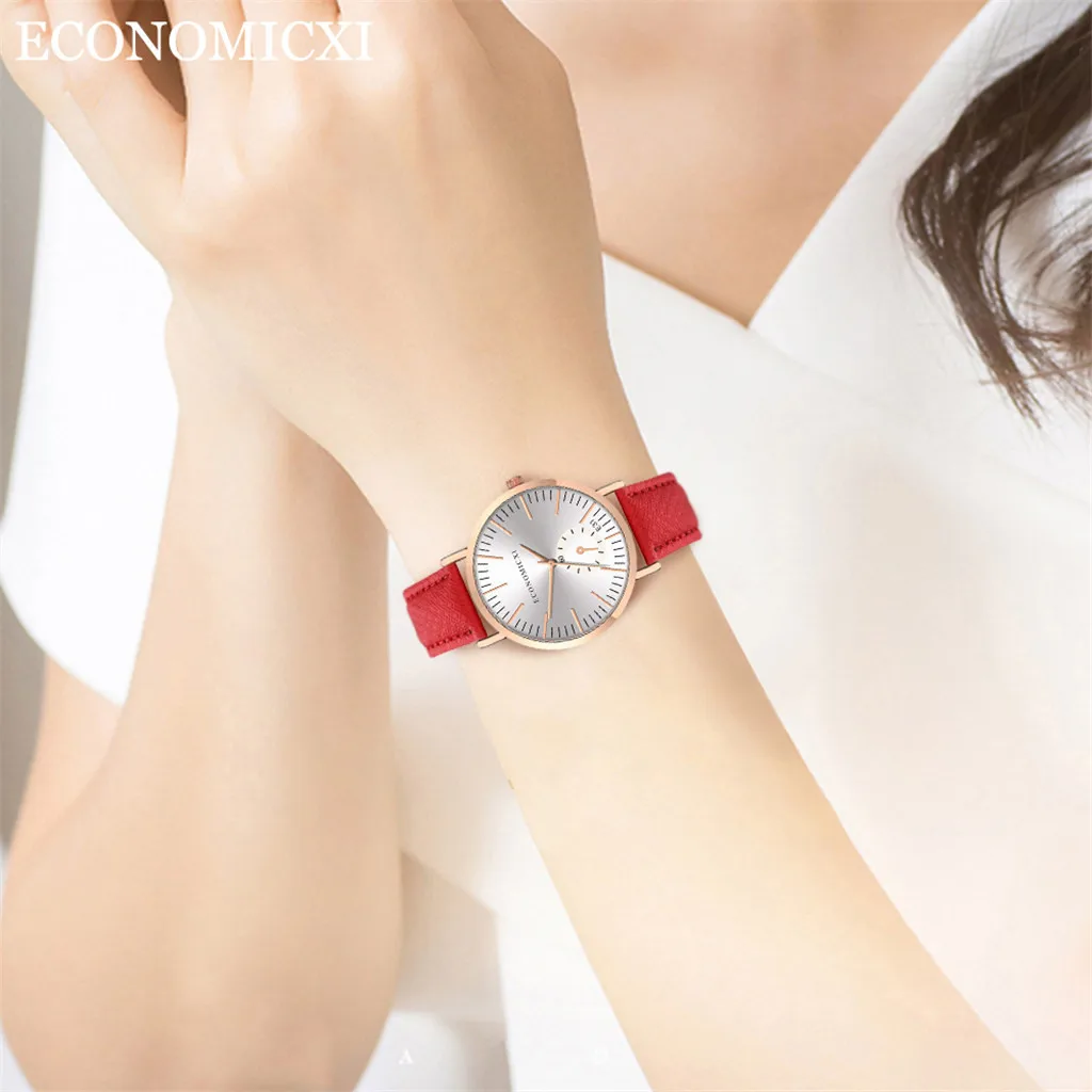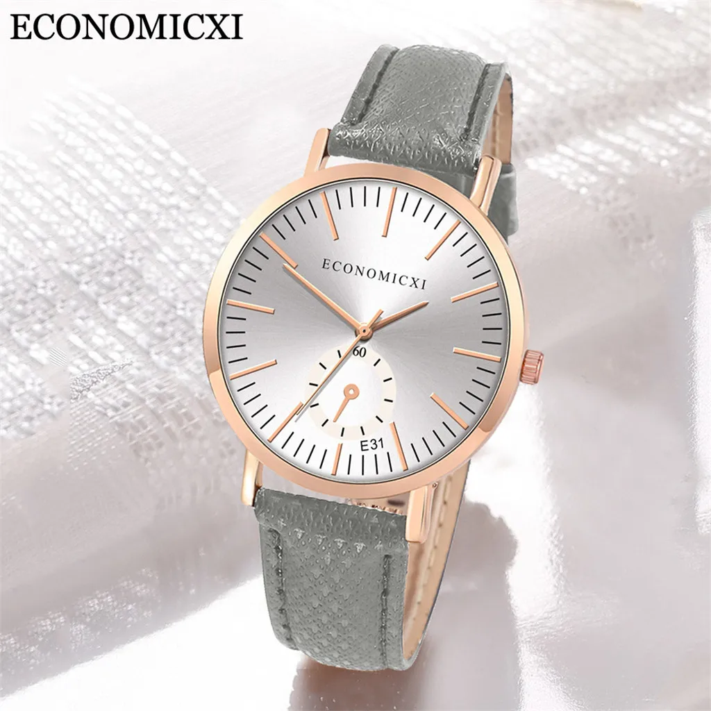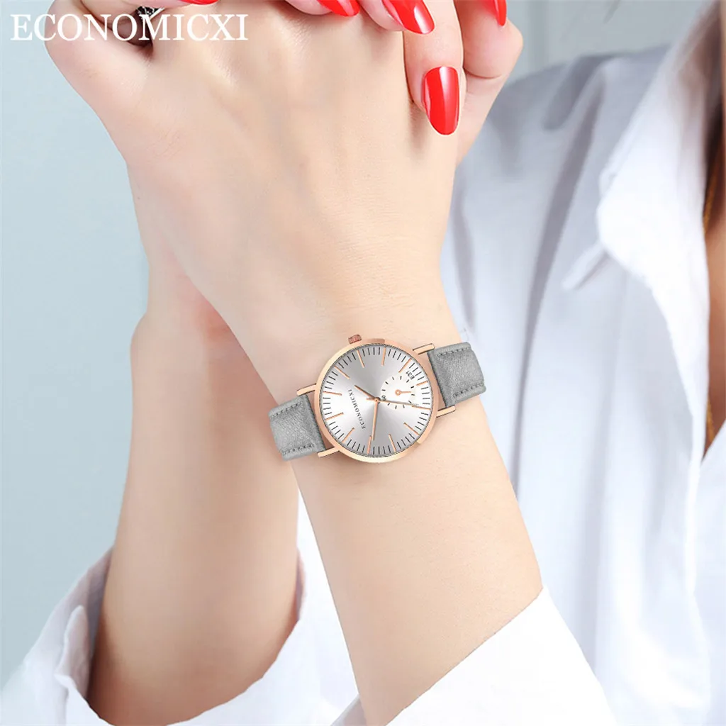 Модные женские часы с кожаным ремешком, кварцевые аналоговые круглые наручные часы