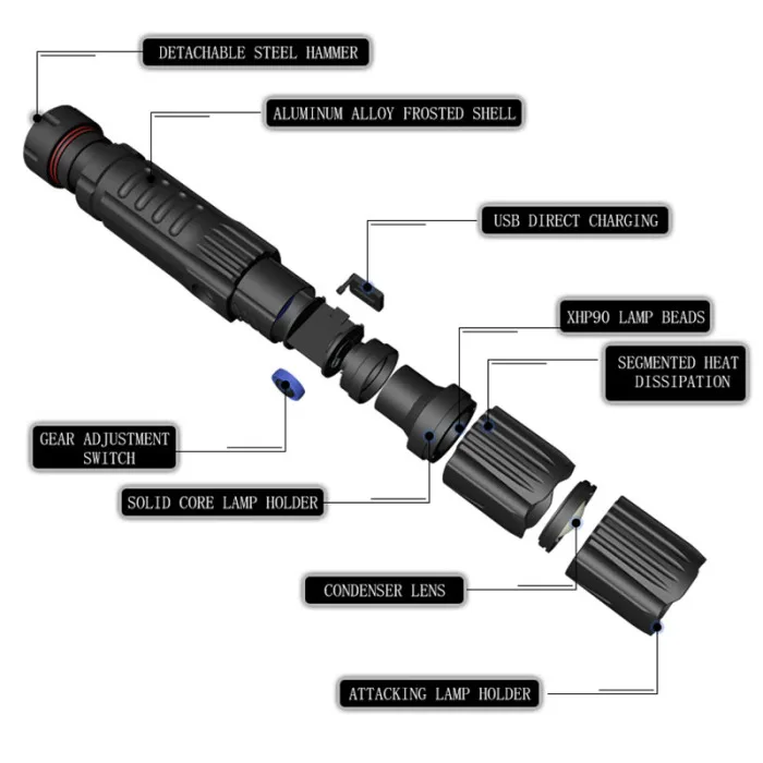 Горячий Многофункциональный светодиодный светильник-вспышка USB Перезаряжаемый масштабируемый фонарь светильник мощный дисплей защитный молоток для наружного кемпинга рыбалки M