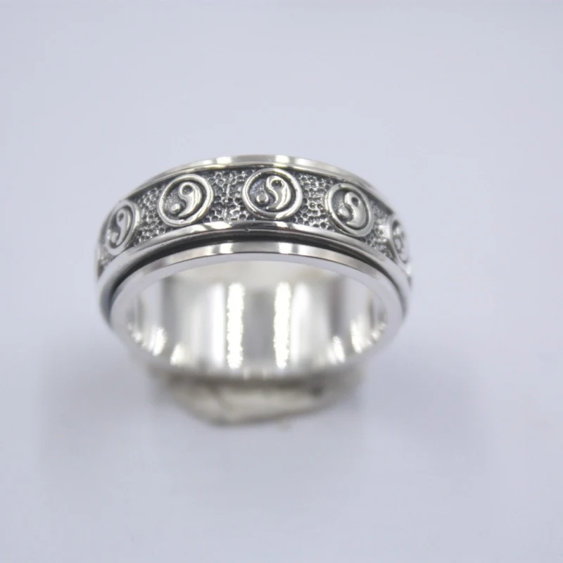 Металл: 925 пробы серебро (подлинное серебро 925 пробы) Ширина: 8 мм Размеры: от 5,5 до 12 (по ТИХООКЕАНСКОМУ летнему времени США Размеры) Ремесло: кольцо двойное, верхняя часть может поворачиваться. Визитная карточка: S925 (стандартный штамп из серебра 925 пробы)