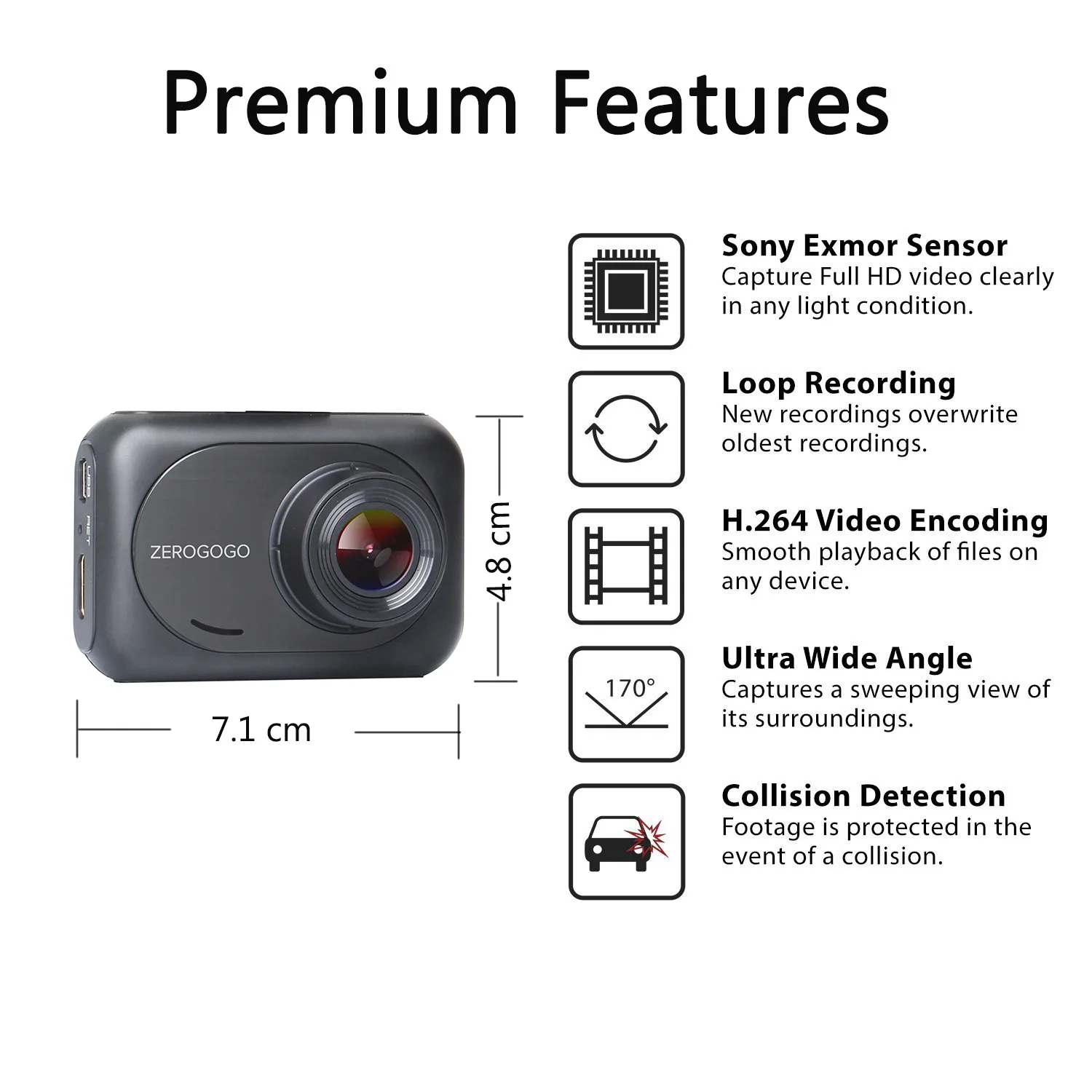 Автомобильный мини-видеорегистратор ZEROGOGO, Full HD 1080P, видеорегистратор для вождения, 170 градусов, широкоугольный видеорегистратор NOVATEK