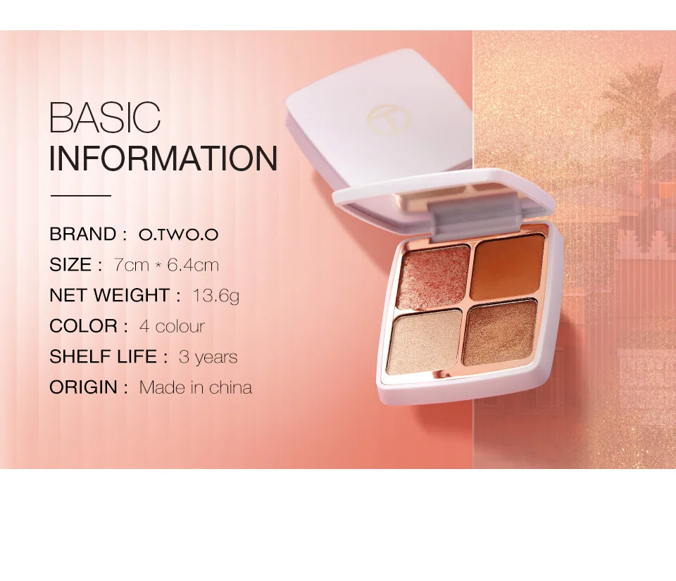 O.TWO.O 4 цвета матовые мерцающие блестящие EffectEyeshadow палитра цветной рисунок марокканские тени для век макияж Comestic тени для век