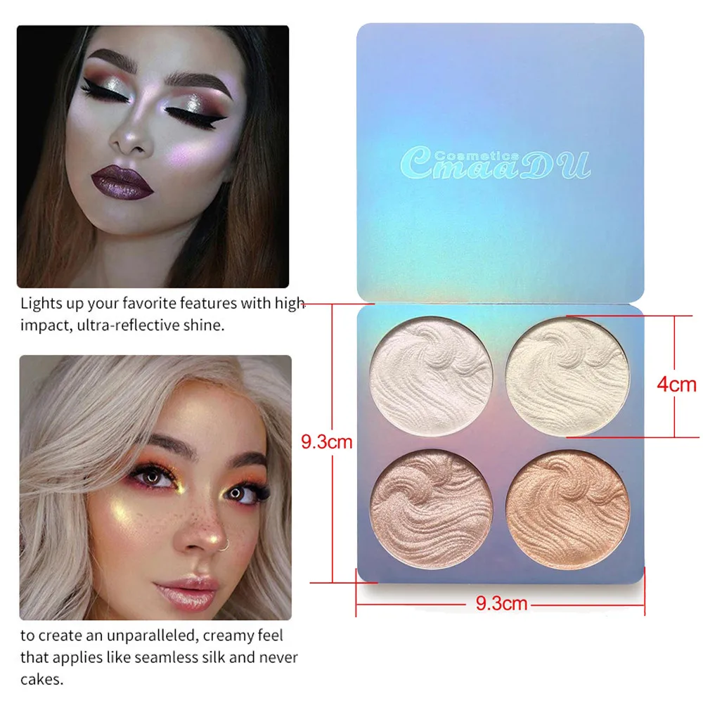 Макияж прессованная пудра для лица 4 вида цветов загар и хайлайтер порошок Палитра высокого мерцания светящийся лайнер набор