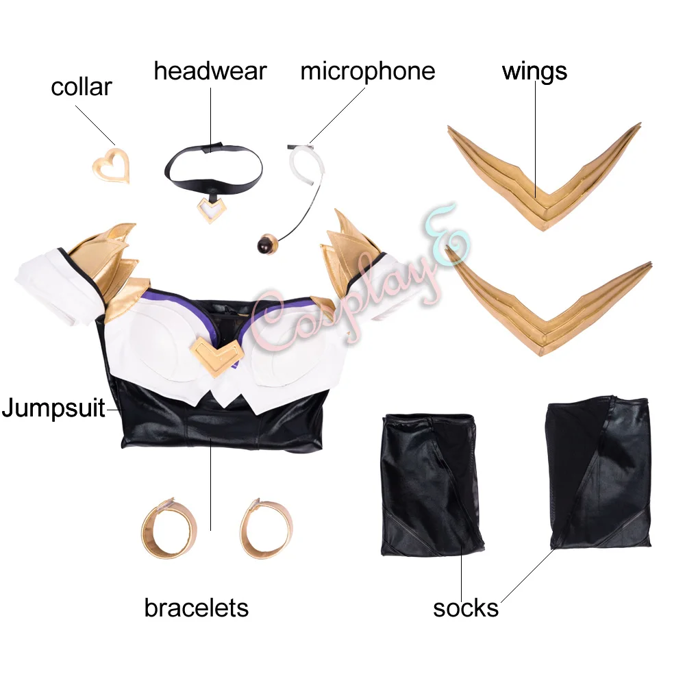 Игра: League Of Legends Персонажи: костюмы лисицы с 9-хвостом Посылка включает в себя: комбинезон, носки, повязки, головные уборы, воротник, крылья, золотые браслеты Материал: спандекс, кожа, сетка Вес: 0,42 кг