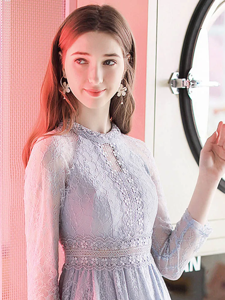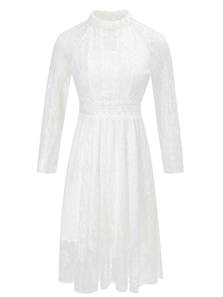 Темпераментное качество лучшее платье с длинными рукавами весна 2020 прозрачные кружевные белые европейские американские повседневные дизайнерские женские платья