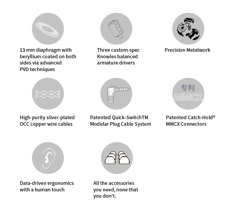 Сбалансированная арматура (ы): 3 пользовательских драйвера knowles ba (1 средний-высокий, 2 ультра-высокий)