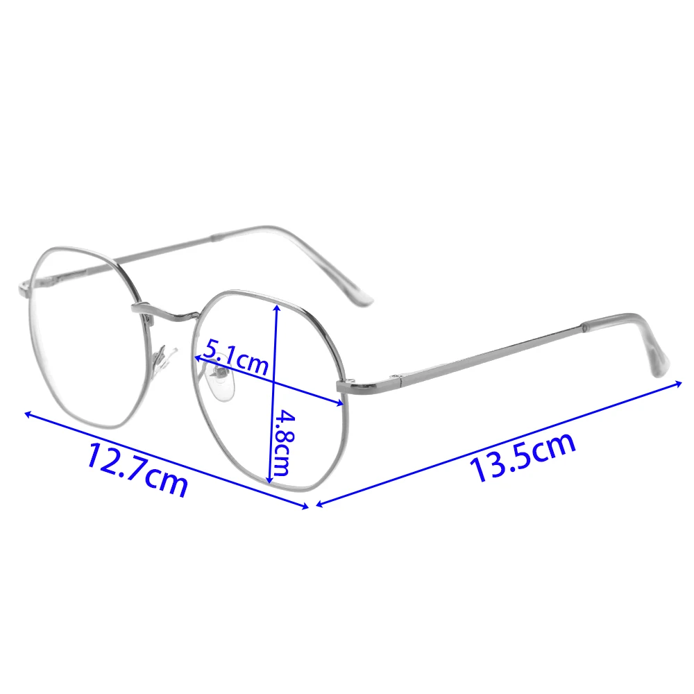 Тип: очки для близорукости Цвет: золотой, серебряный, черный Материал: смола, металл Прочность:-1,0/-1,5/-2,0/-2,5/-3,0/-3,5/-4,0 Пол: женщин, мужчин Стиль: Модный, винтажный Длина оправы: 13,6 см Объектив Ширина: 5,3 см Высота линзы: 4,9 см Дужки для очков Длина: 14,1 см Изготовлен из высококачественного полимерного материала, он очень прочный. Модные ручки обеспечивают гладкость и комфорт. Они подходят для обувь для мужчин и женщин с видение близорукости.