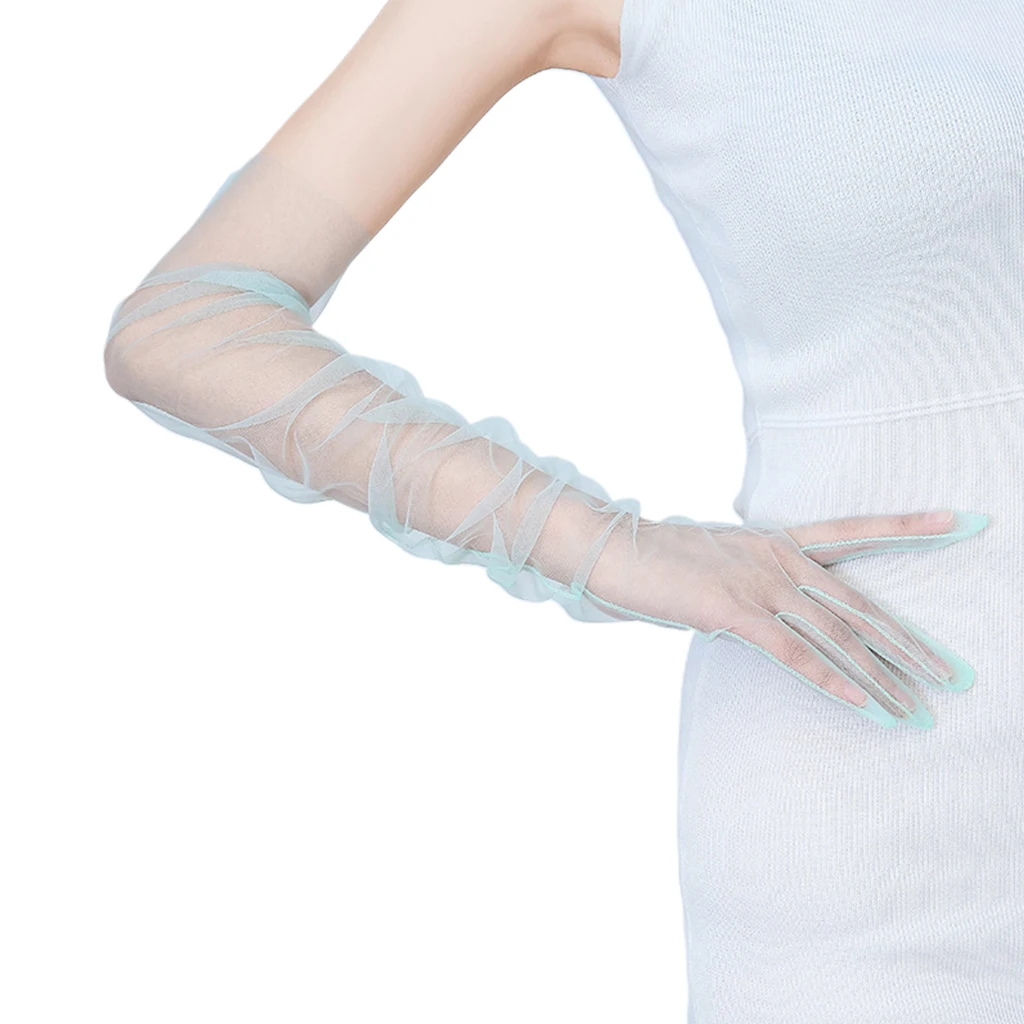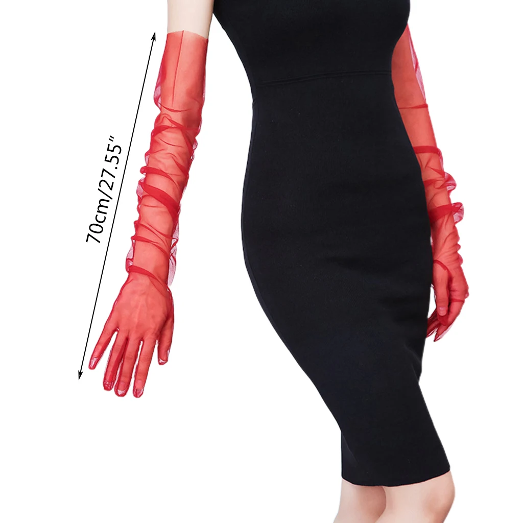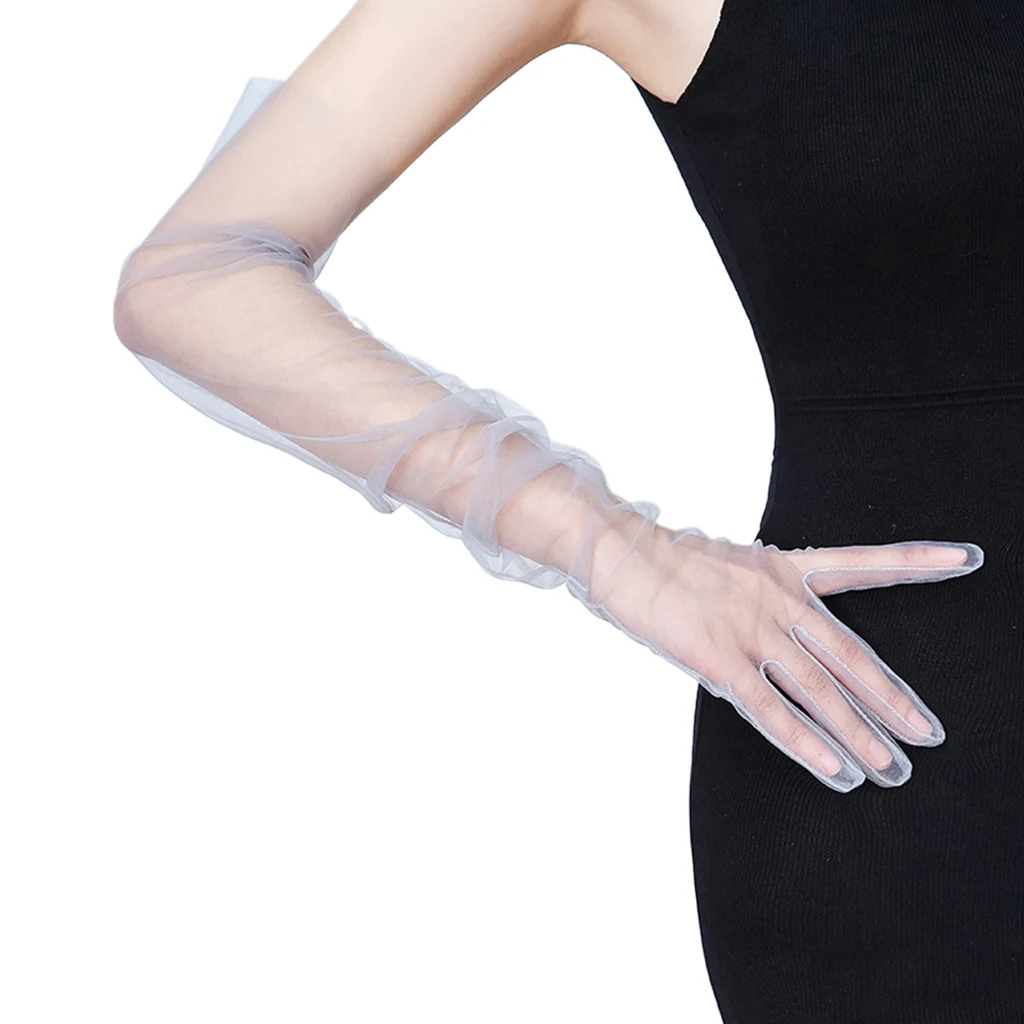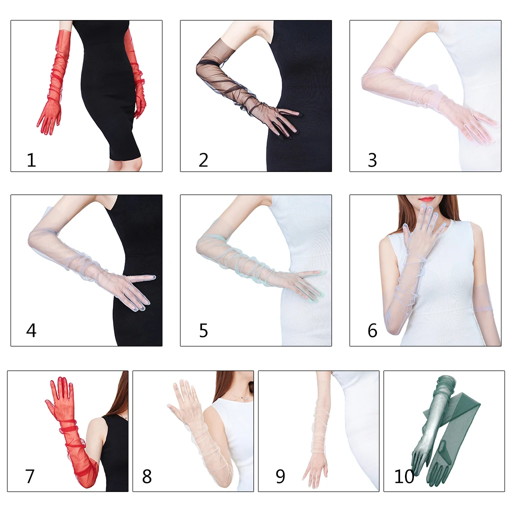 Ультра-тонкие, по колено, прозрачные, однотонные, свободные длинные перчатки с полными пальцами.