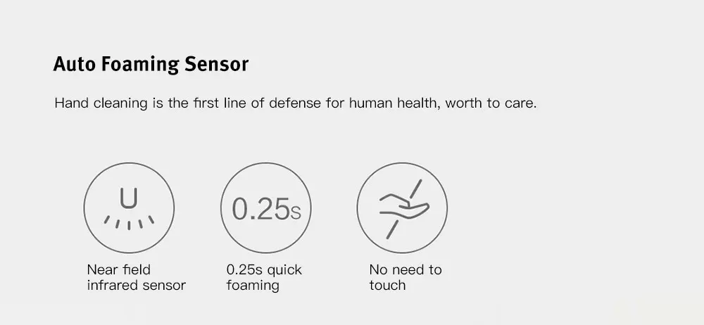 1. The hand washer is xiaomi ecological chain company which brand is MiniJ , there is not any xiaomi marks on the product and gift box. 2.Due to the variety of hand wash liquid, we cannot guarantee that all the washing liquid will be foamy through this washing machine, please understand thanks. 3. Please remember to shot the video including the process you unpack the parcel and try out the product in the first time once you receive it, in case that there is problem in the product , which is benefit of protecting your shopping rights. The Auto Foaming Hand Washer features an ultra-small size, as smaller as a toothbrush cup. You can put it in kitchen, bathroom, balcony easily. With auto foaming sensor, reaching hand 0.25s quick foaming, convenient and easy. 4.Please make sure to use a foam soap ,if not It does not work.1. If choose bundle:No Liquid ,We can not confirm 100% Liquid can useful this product;