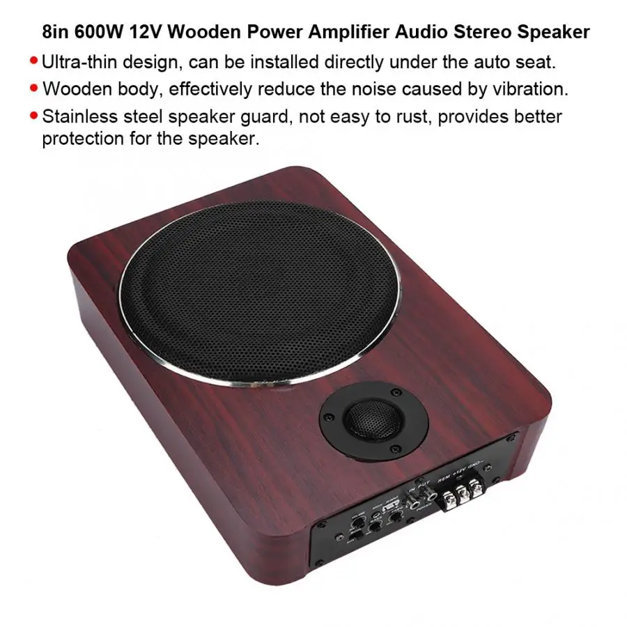8in 600W 12V деревянный Мощность усилитель аудио стерео Hi-Fi звук Авто Динамик под авто сиденья