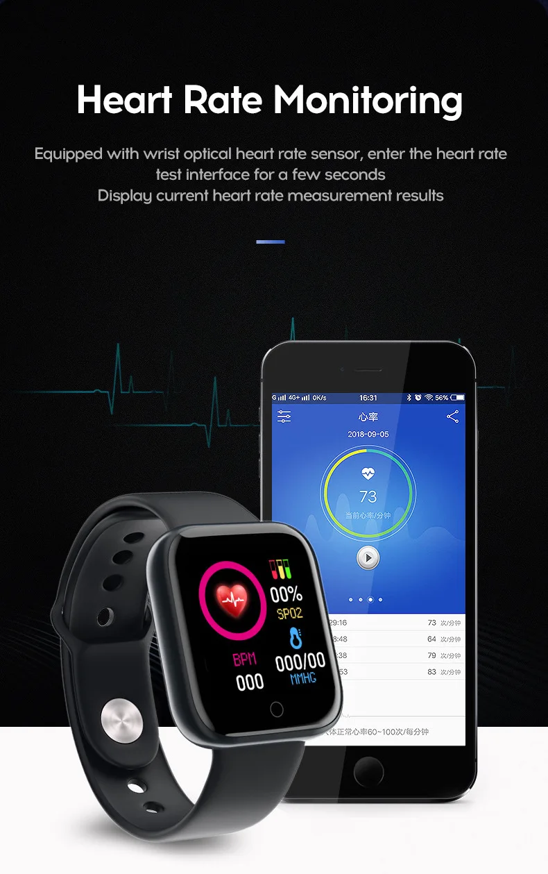 Мощные функции: Синхронизация погоды, пульс в реальном времени и качество сна, управление музыкой, удаленная камера для съемки на смартфоне, Отслеживание нескольких видов спорта, отслеживание шагов ходьбы, сжигание калорий, собирает звонки и сообщения, водонепроницаемый плавать с ним. Функция напоминания: Подключение часов к мобильному телефону iPhone или Android и синхронизация с Facebook, Whatsapp, Twitter, Skype и другим программным обеспечением. Уведомления о вибрации Более широкая совместимость: приложение поддерживает смартфоны с Bluetooth 4,0 Система поддержки: iOS 9,0 или выше, Android 4,4 или выше (не для планшета). Для полной зарядки требуется всего около 2 часов, а время работы может достигать 7 дней при полной мощности Водонепроницаемый Рейтинг: IP68 полностью пыленепроницаемый и водонепроницаемый. Он может отлично сопоставить вас в повседневной жизни. Куда бы вы ни отправились, например, Мойте руки, гуляйте под дождем и т. д. вы можете взять этот товар с собой и записывать всю свою физическую активность весь день. Динамический пульсометр с автоматическим режимом сна: фитнес-трекер Y68 отслеживает динамический пульс, загружая данные сердечного ритма в реальном времени в приложение. Также поддерживает автоматический мониторинг сна, он записывает глубокий сон, светильник, режим сна, режим бодрствования. Все данные о состоянии здоровья показывают как диаграмму, четко подтвердите ваш Физический Статус в течение всего дня/Недели/месяца. Пожалуйста, обратите внимание, что вы не можете полностью ответить на показания, так как это может немного отличаться от профессиональных показаний в области здравоохранения. Описание продукта: Размер экрана: 1,3 дюйма Емкость аккумулятора: 150 мАч Как носить: Браслет Режим работы: сенсорный Беспроводное расстояние: 10 м (включительно) Функция связи: не поддерживается Материал ремешка: силикон Комплектация: головка, ремень, руководство Функция: мониторинг качества сна Применимо к: обычная