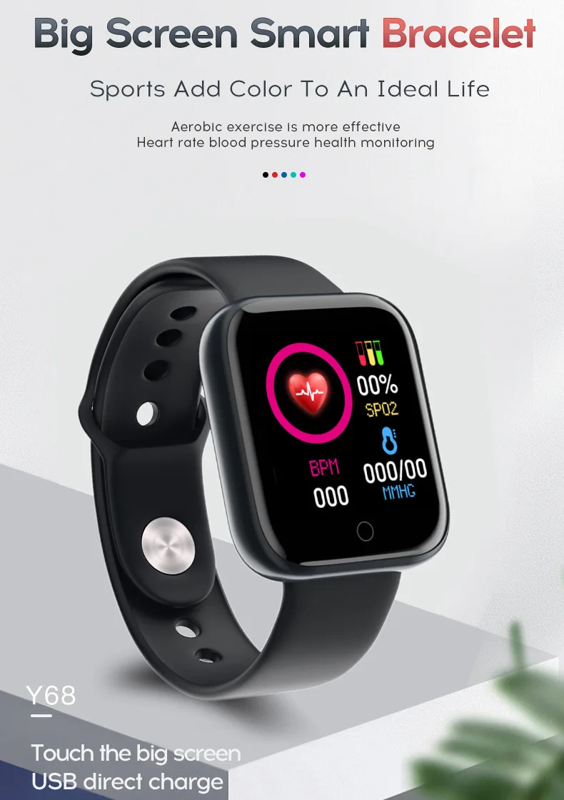 Y68 фитнес умные часы Bluetooth 5,0 спортивные часы с отслеживанием активности на весь день Пульс 15 дней Срок службы батареи IP68 Водонепроницаемый Монитор артериального давления для бега верховой езды