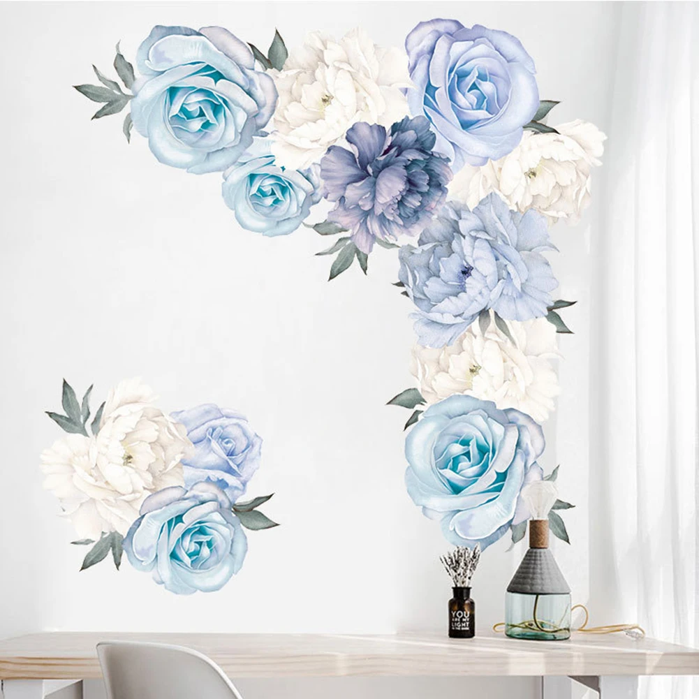 2Pcs Flower Peony Removable Wall Sticker Stairs Decal Living Room Bedroom Decor