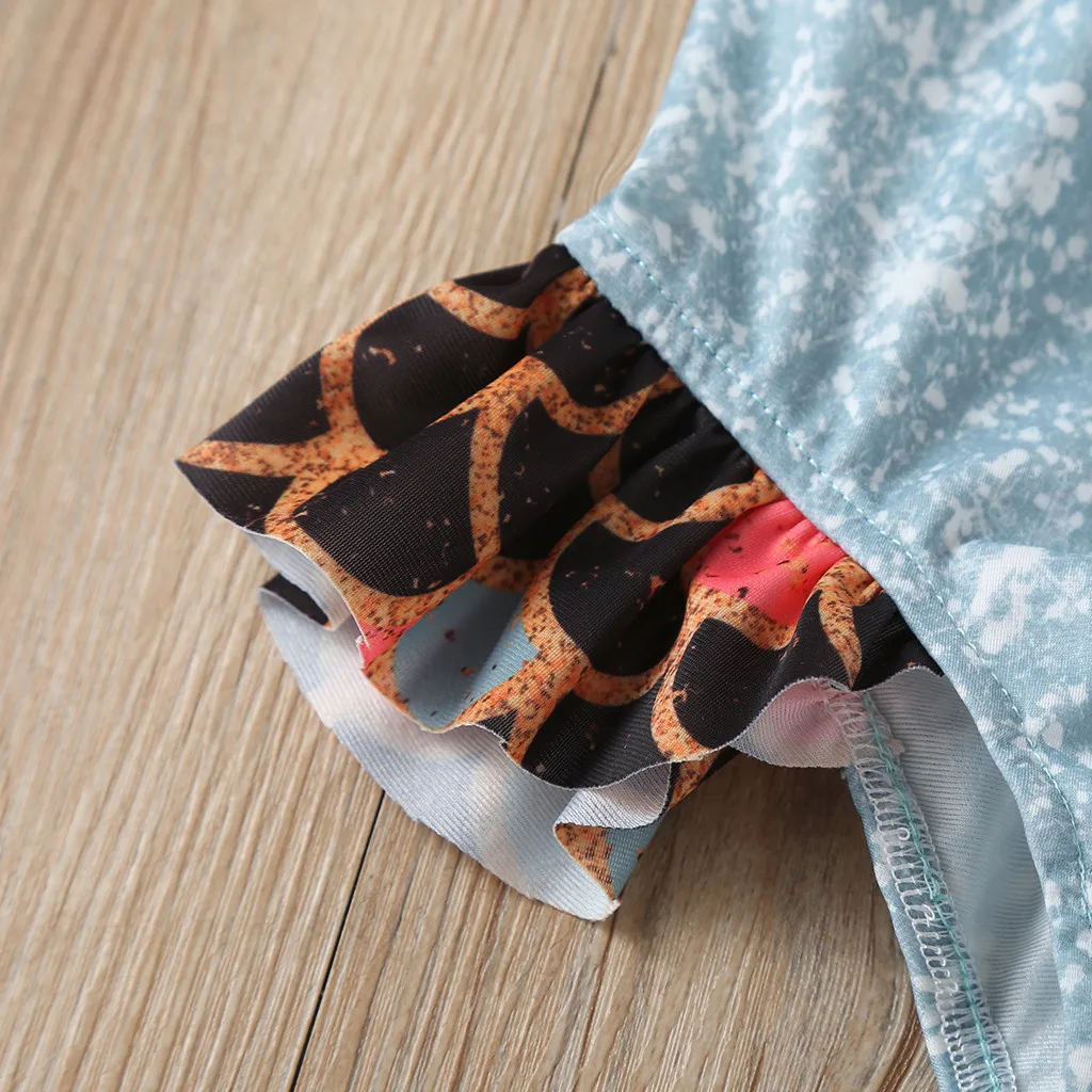 Летний детский купальный костюм без рукавов с оборками и рисунком для маленьких девочек, комплекты бикини, детские купальные костюмы, топы и шорты