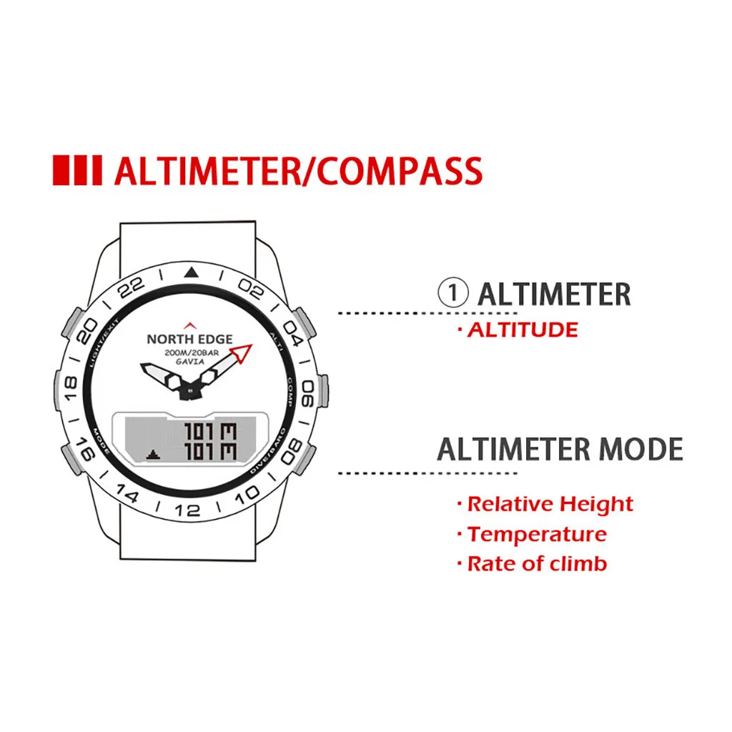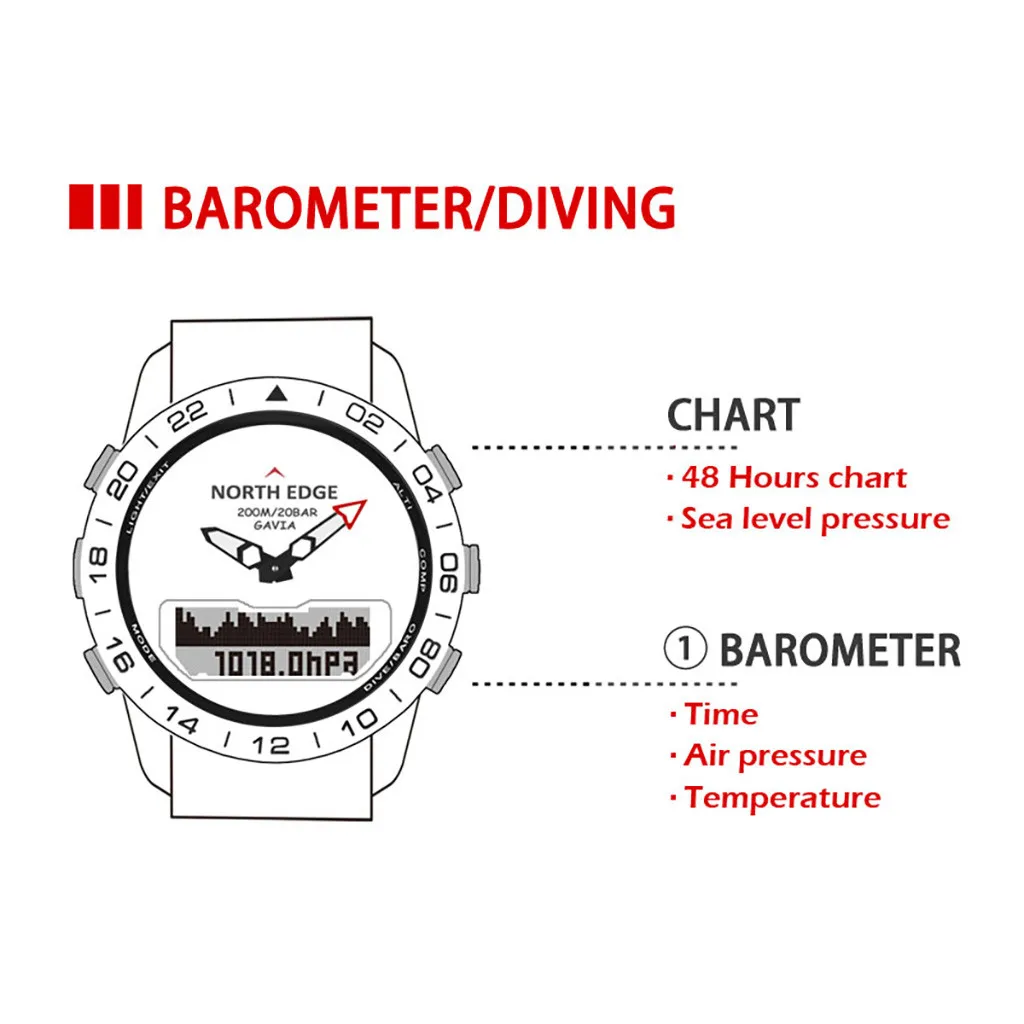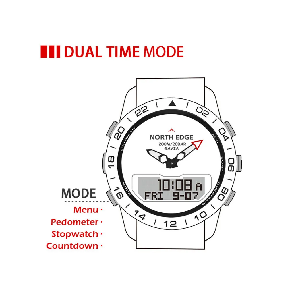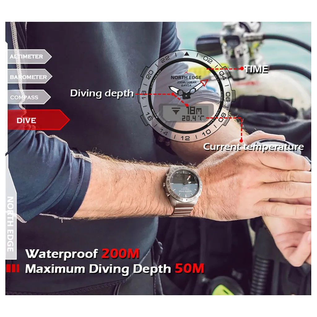 NORTHEDGE GAVIA2 мужские спортивные часы цифровые наручные часы 5 АТМ водонепроницаемые часы стоп