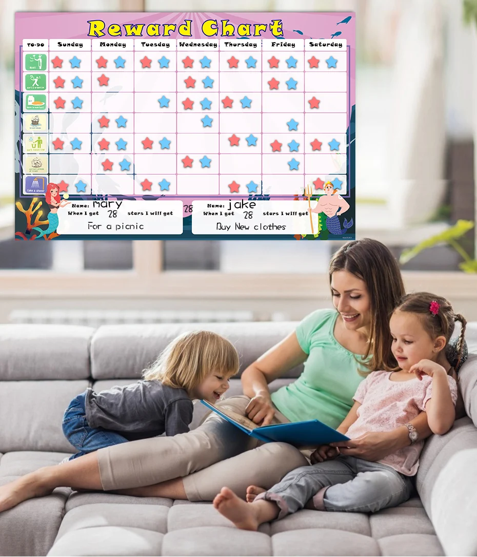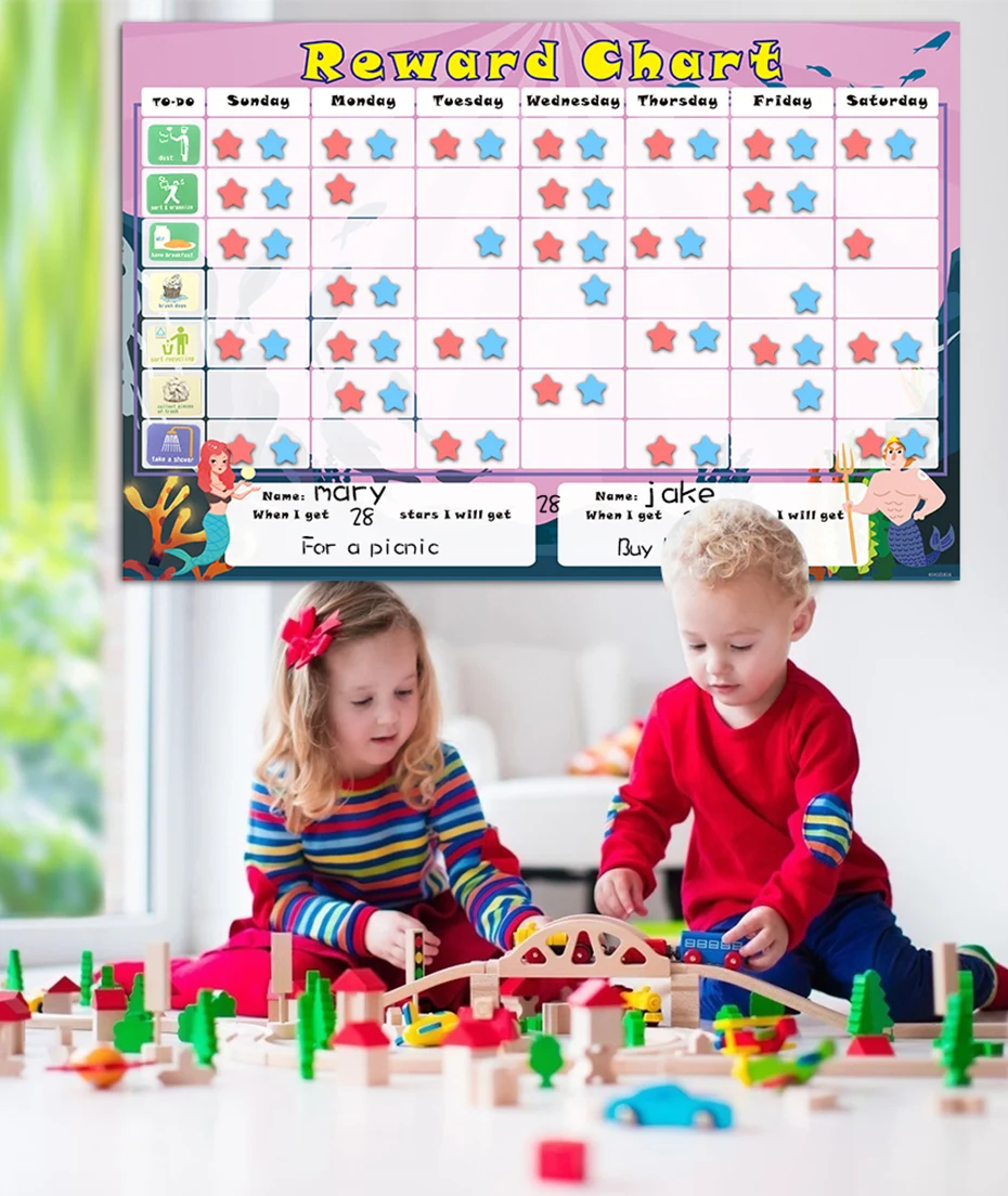 Магнитная Таблица наград двух детей, детская диаграмма, календарь, расписание, Настенная Наклейка для украшения детской комнаты
