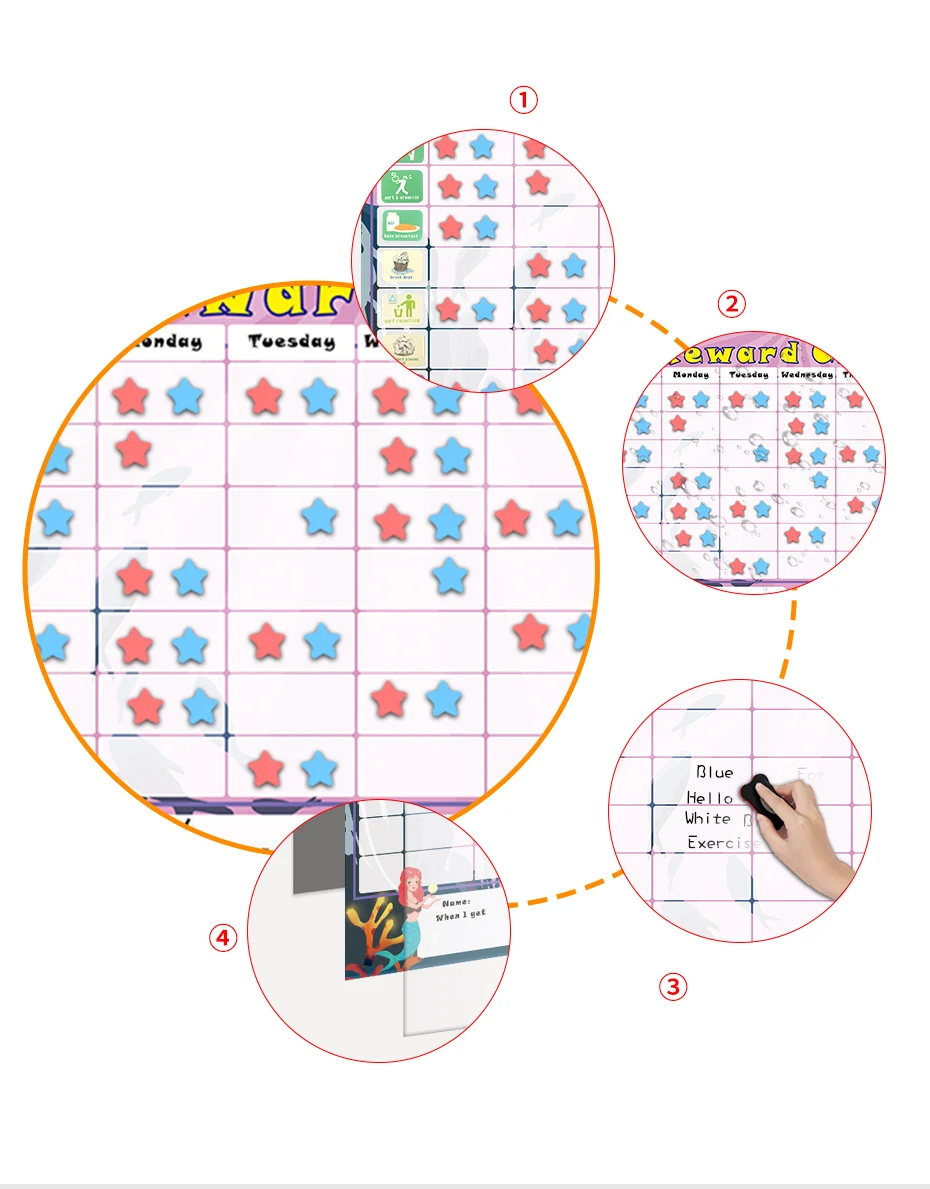 «Таблица детского поведения»-это Магнитная диаграмма сухого стирания для детей 3 лет и старше, которая нацелена на стимулирование ответственности и независимости в раннем возрасте. В таблице наград признаются позитивные изменения в моделях для детей дома, в школе и/или классе, награждая их и сохраняя мотивы, чтобы продолжать нести ответственность.