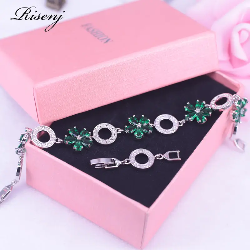 Женский свадебный браслет с зеленым кубическим цирконием, белый кристаллический браслет из стерлингового серебра 925 пробы, вечерние ювелирные изделия