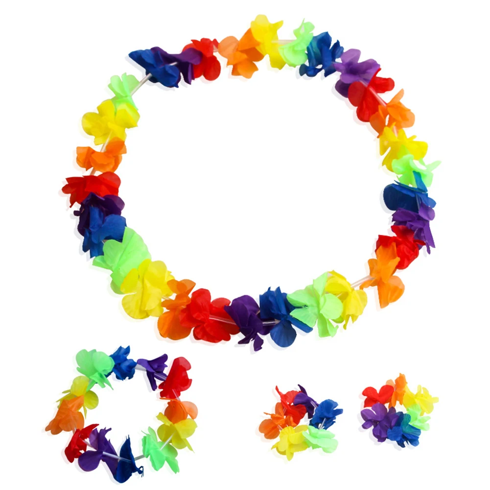 4 шт./компл., искусственные Гавайские гирлянды, ожерелье, Гавайские цветы, вечерние принадлежности, Пляжное веселье, венок, сделай сам, свадебные вечерние украшения