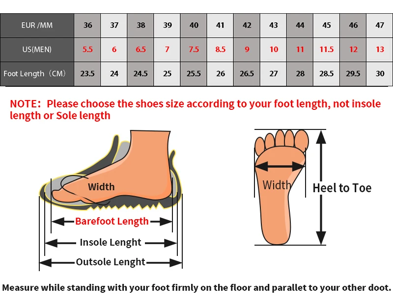 Примечание: Если ваша стопа толстая или широкая, мы предлагаем вам выбрать на один размер больше! Пожалуйста, выберите американский размер в соответствии с длиной Вашей стопы. Американский размер только для справки.
