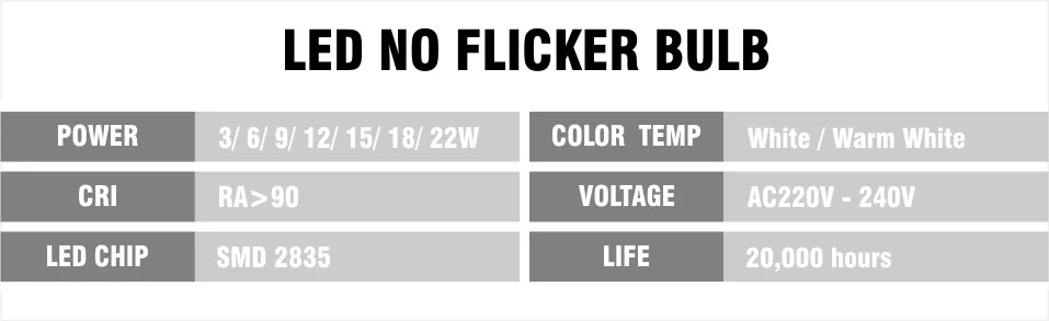 Product Information: Base Material: Aluminum Application: Commercial/Indoor Power Tolerance: 1% Color Rendering Index (CRI): 90 Model Number: LED Bulb Certification: ce/RoHS Voltage: AC220V 230V 240V Color Temperature: Cool White(5500-7000K) Item Type: Incandescent Bulbs Luminous Flux: 1000-1999LM Color Temp(K): 6000K Average Life (hrs): 50000hrs Glass cover Surface treatment: Transparent Wattage: 15wPower: 3W 6W 9W 12W 15W 18W 22W Voltage: AC220V 230V 240V CRI: Ra>90LED CHIP: SMD 2835 Color Temp: Cold White / Warm White Life: 20000 hoursLED BULB LAMP SERIES