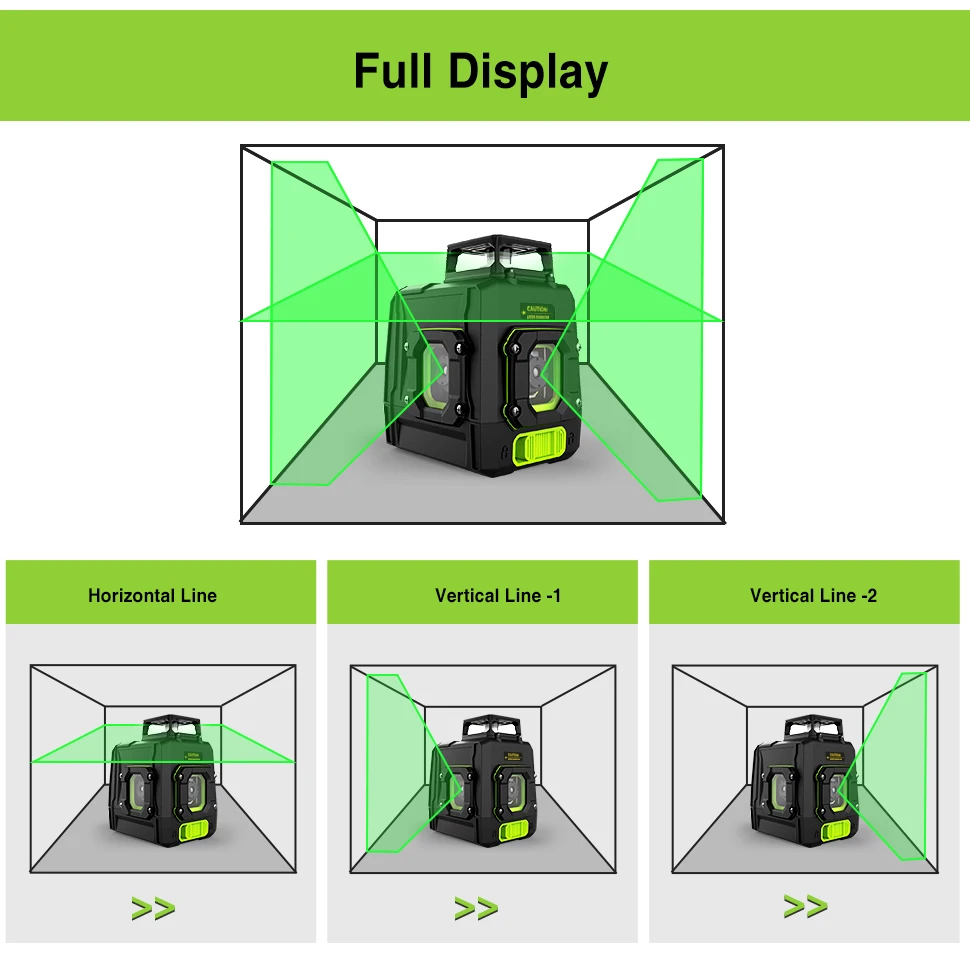 1) режим блокировки (ручной режим): когда линейный лазерный нивелир 3x360 заблокирован, нажмите кнопку питания, это может сделать линии наклона, И он будет мигать каждые 5 секунд. 2) Режим разблокировки (режим самовыравнивания): когда линейный лазерный нивелир 3x360 разблокирован, нажмите кнопку питания, это позволит сделать самовыравнивающиеся линии.
