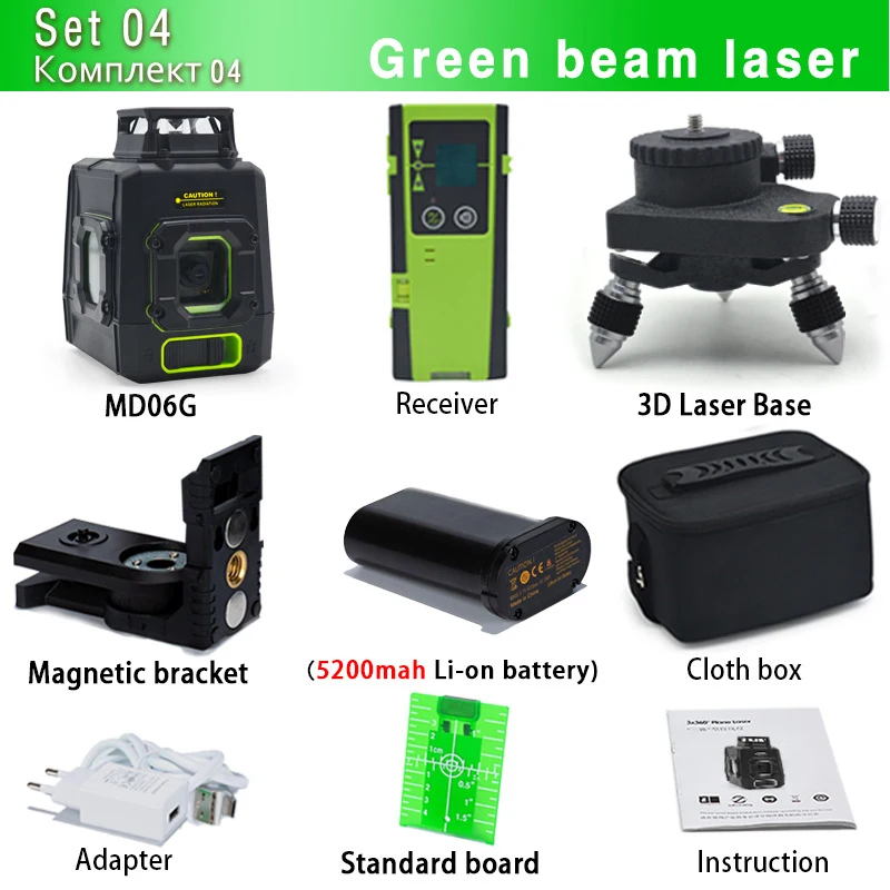 Нивелир лазерный Clubiona с защитой от падения, 6 линий, литиевый аккумулятор 5200 мАч
