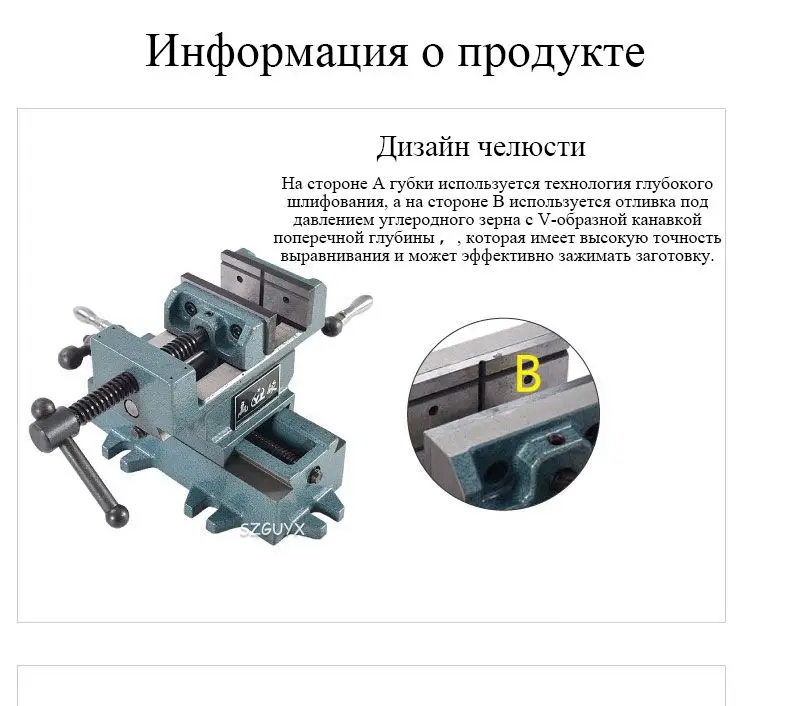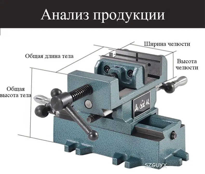 Материал: чугунные Модель: 3 дюйм (ов) Общая длина: 165 мм Общая высота: 138 мм Ширина челюсти: 80 мм Максимальный зажим: 80 мм Высота челюсти: 35 мм Общая длина основания: 215 мм Поперечный ход: 100*130 мм Вес: 7,5 кг Модель: 4 дюйм (ов) Общая длина: 185 мм Общая высота: 148 мм Ширина челюсти: 100 мм Максимальный зажим: 100 мм Высота челюсти: 45 мм Общая длина основания: 215 мм Поперечный ход: 100*130 мм Вес: 9,5 кг Меры предосторожности: 1. Подходящая прочность при зажиме заготовки. Поверните ручку голыми руками. Не используйте другие инструменты для увеличения силы, чтобы избежать повреждения винта. 2. Для сильной работы, попробуйте направить силу к фиксированной челюсти. 3. Избегайте стучания на зажиме и гладкой поверхности. 4. Движущиеся поверхности, такие как винты и гайки, следует часто мыть и смазывать, чтобы предотвратить ржавчину.