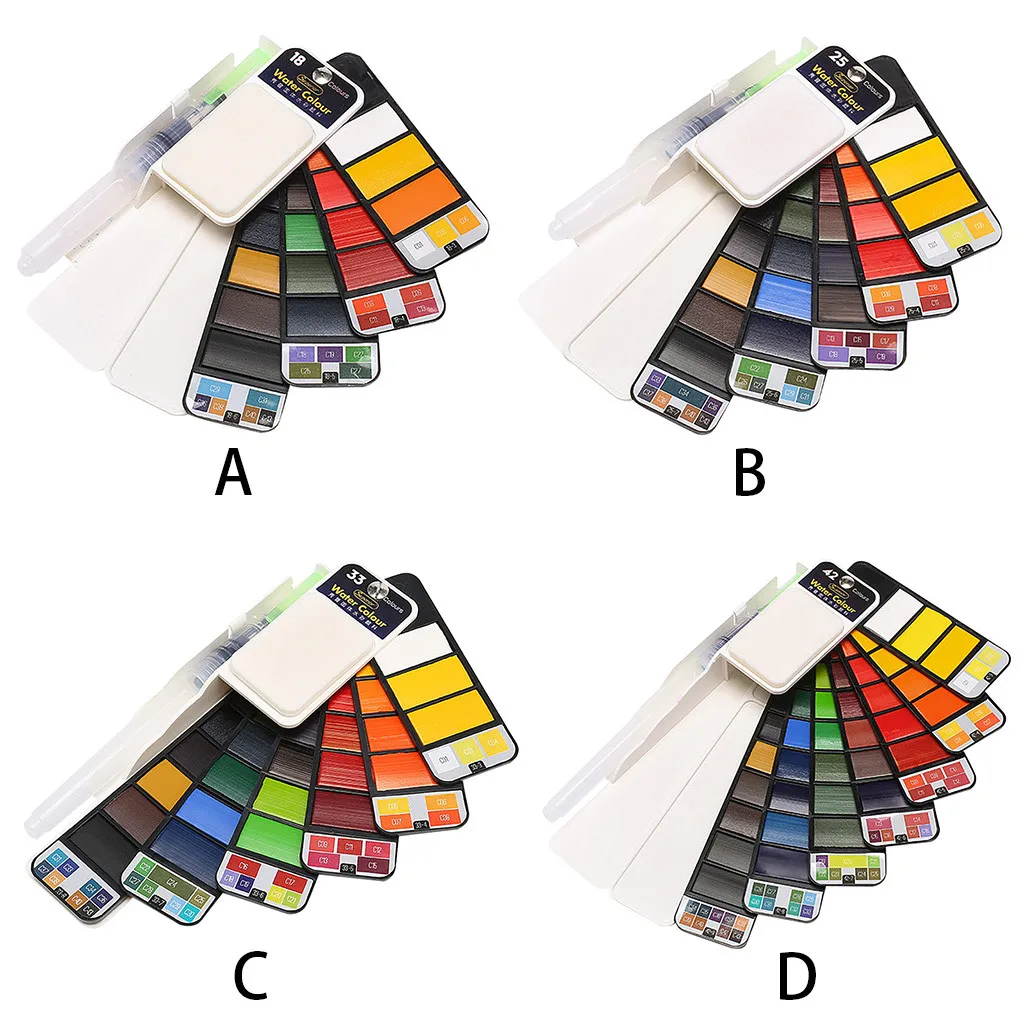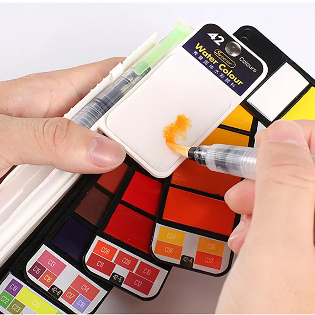 Портативный Набор однотонных акварельных Пигментных красок с водной кистью яркого цвета