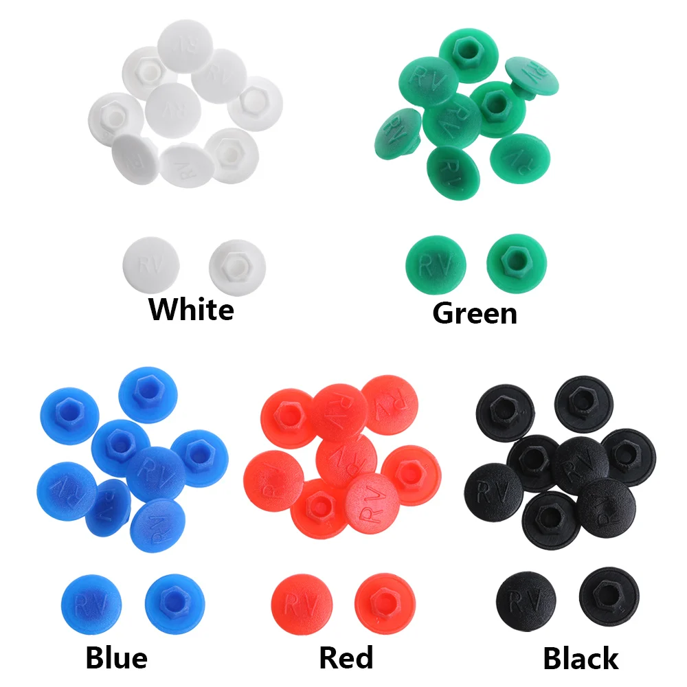 Абсолютно новый и высокого качества Материал: пластик Цвет: черный, белый, красный, синий, зеленый Количество: 10 шт. Размеры: M5: dia. 8,3 мм; M6: Dia.10mm Применяется для: Защитите винт на велосипеде, пыленепроницаемый и так далее Посылка включает в себя 10 винтовых колпачков