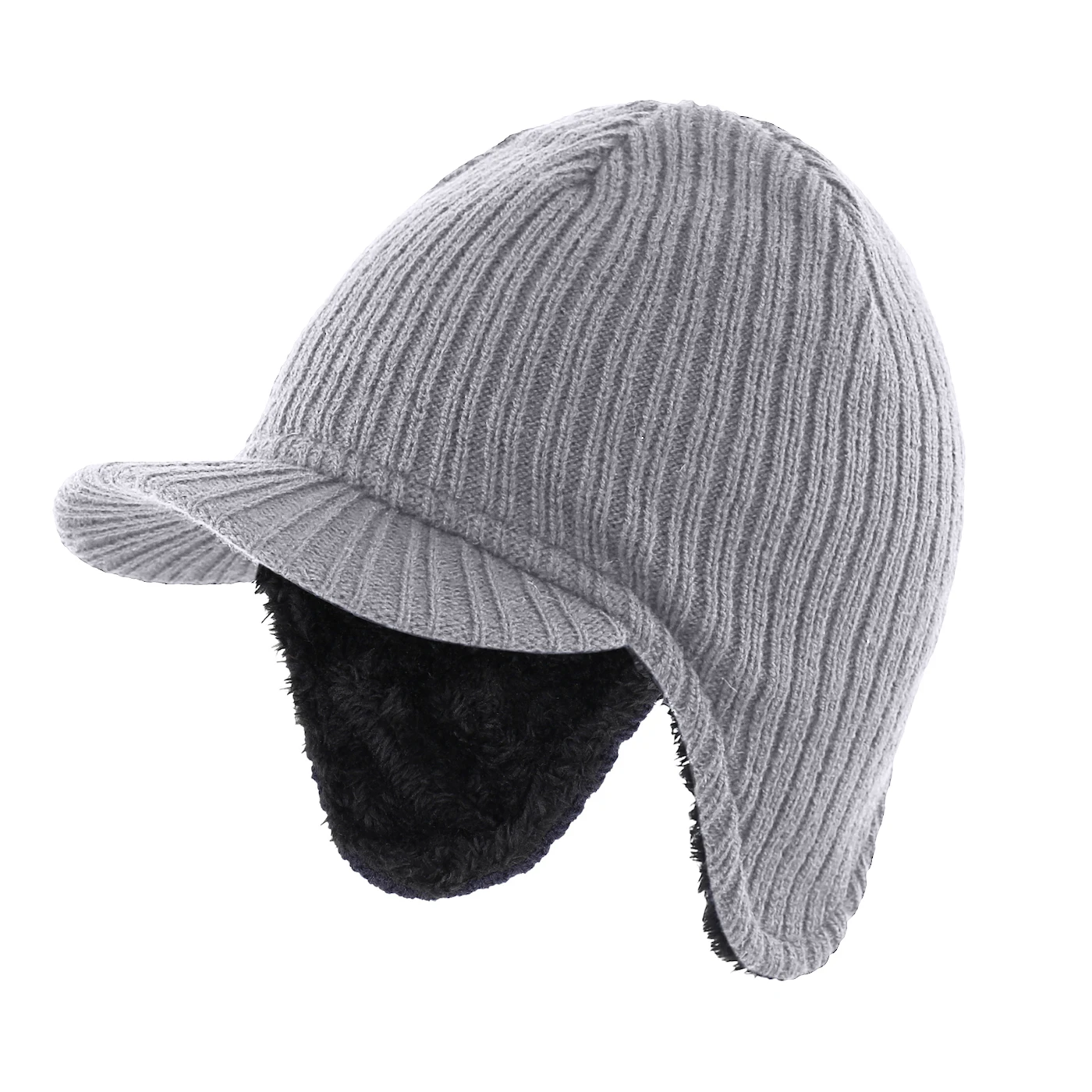 100% акрил, подкладка из 100% полиэстера. Теплый вязаный свитер Зимняя шапка с пушистой подкладкой Портативный и прочный, отлично подходит для холодной погоды, активного отдыха Шляпа с козырьком, которая защищает от солнца и снега глаз при занятиях спортом на открытом воздухе, например, велоспортом, сноубордом, кемпингом, походами и охотой Эластичный, отлично подходит для головы, обхват 57-59 см